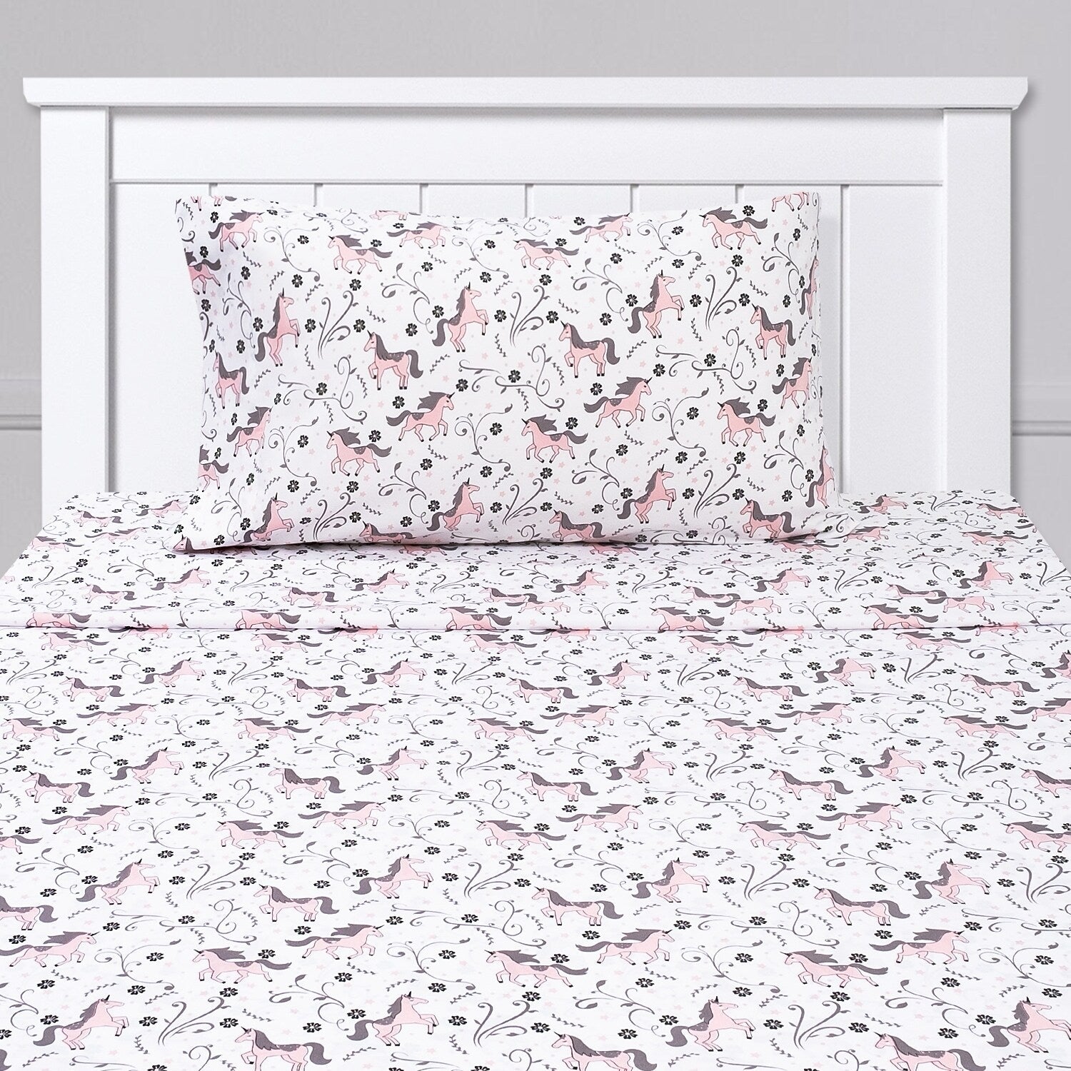 Bring a touch of magic into your child's room by adding this Sweet Home Collection unicorn sheet set to her bed. Super soft microfiber construction pillows your princess in softness while she sleeps, and the sheets are wrinkle-resistant and machine-washable to keep them looking great with simple care.