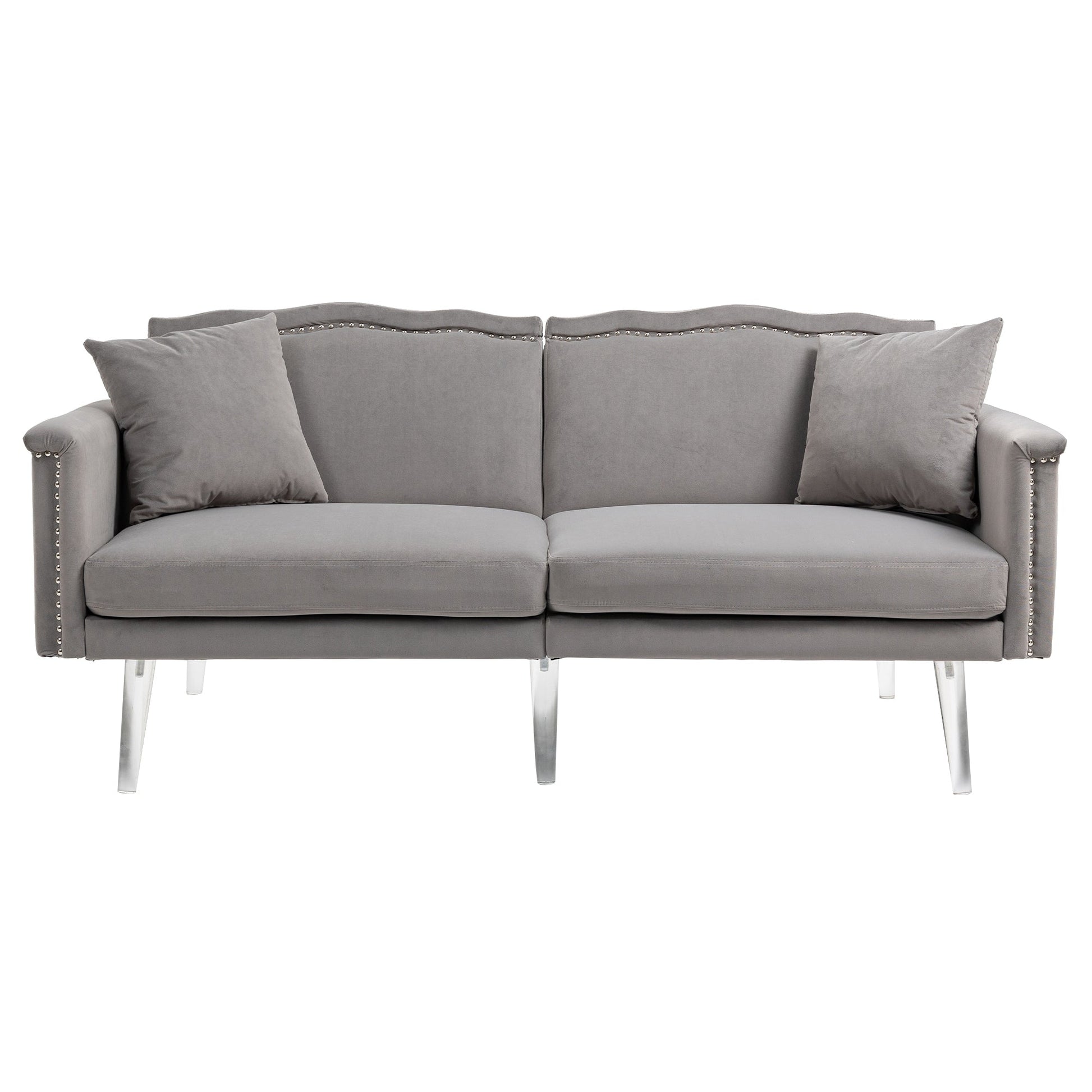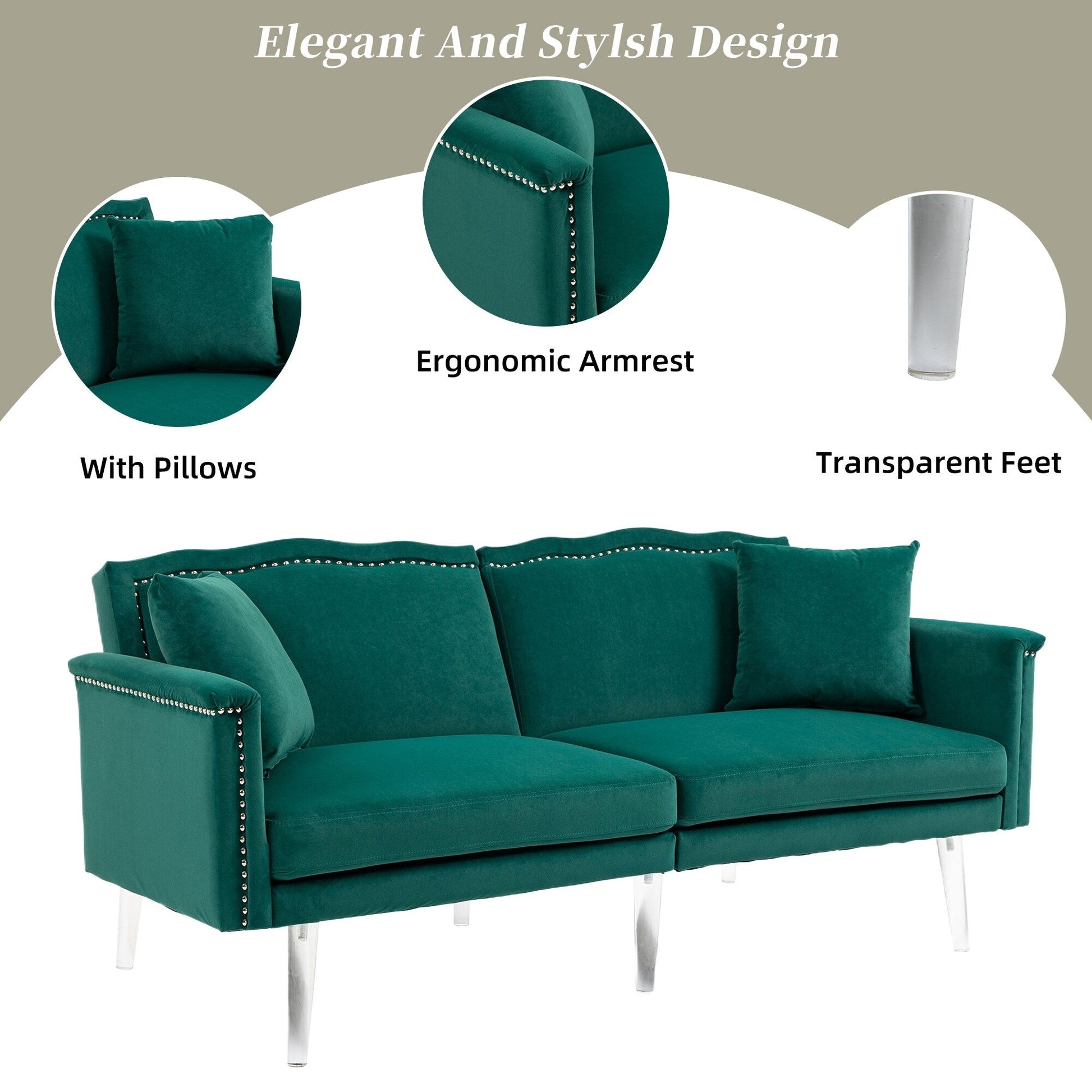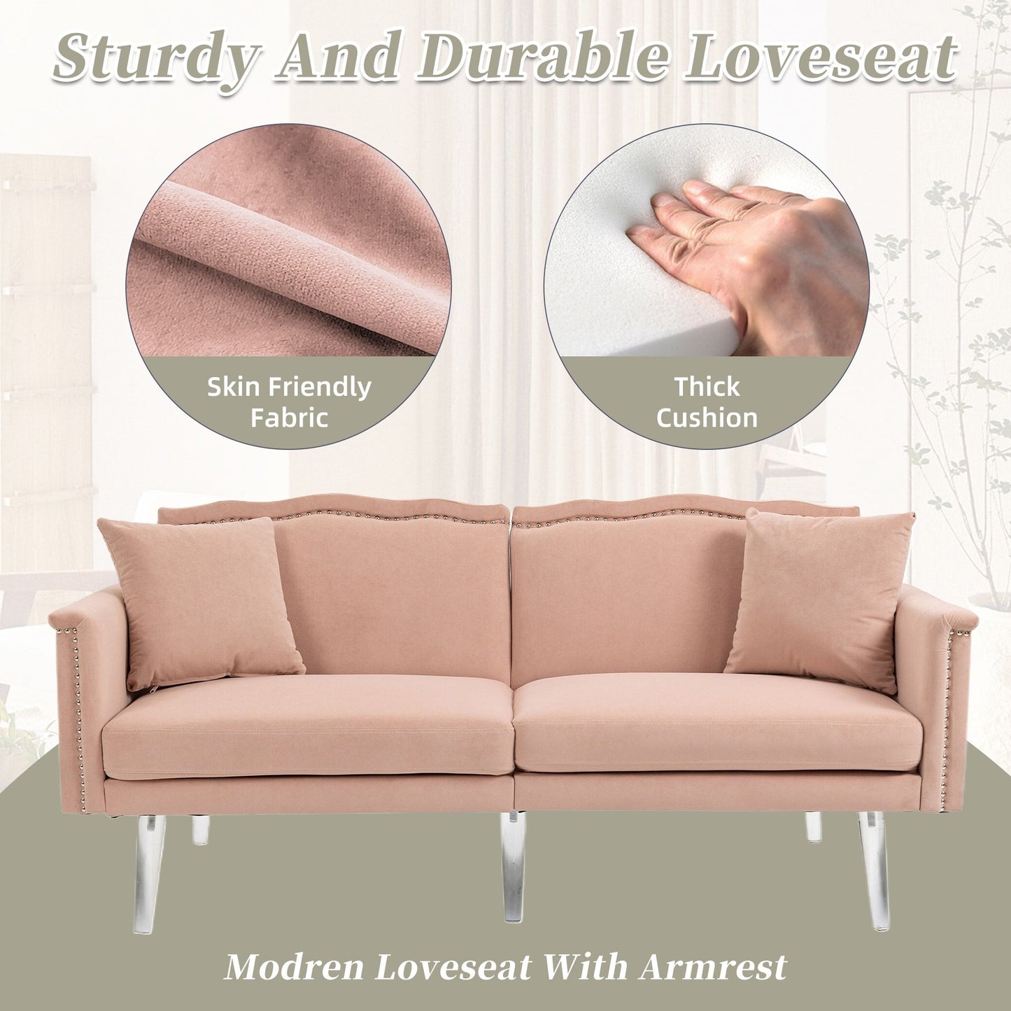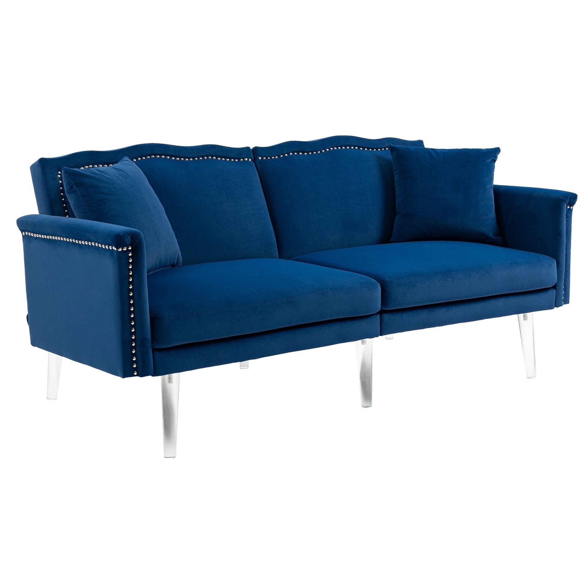 Velvet Upholstered Nailheads Loveseats Sleeper Sofa With Acrylic Feet