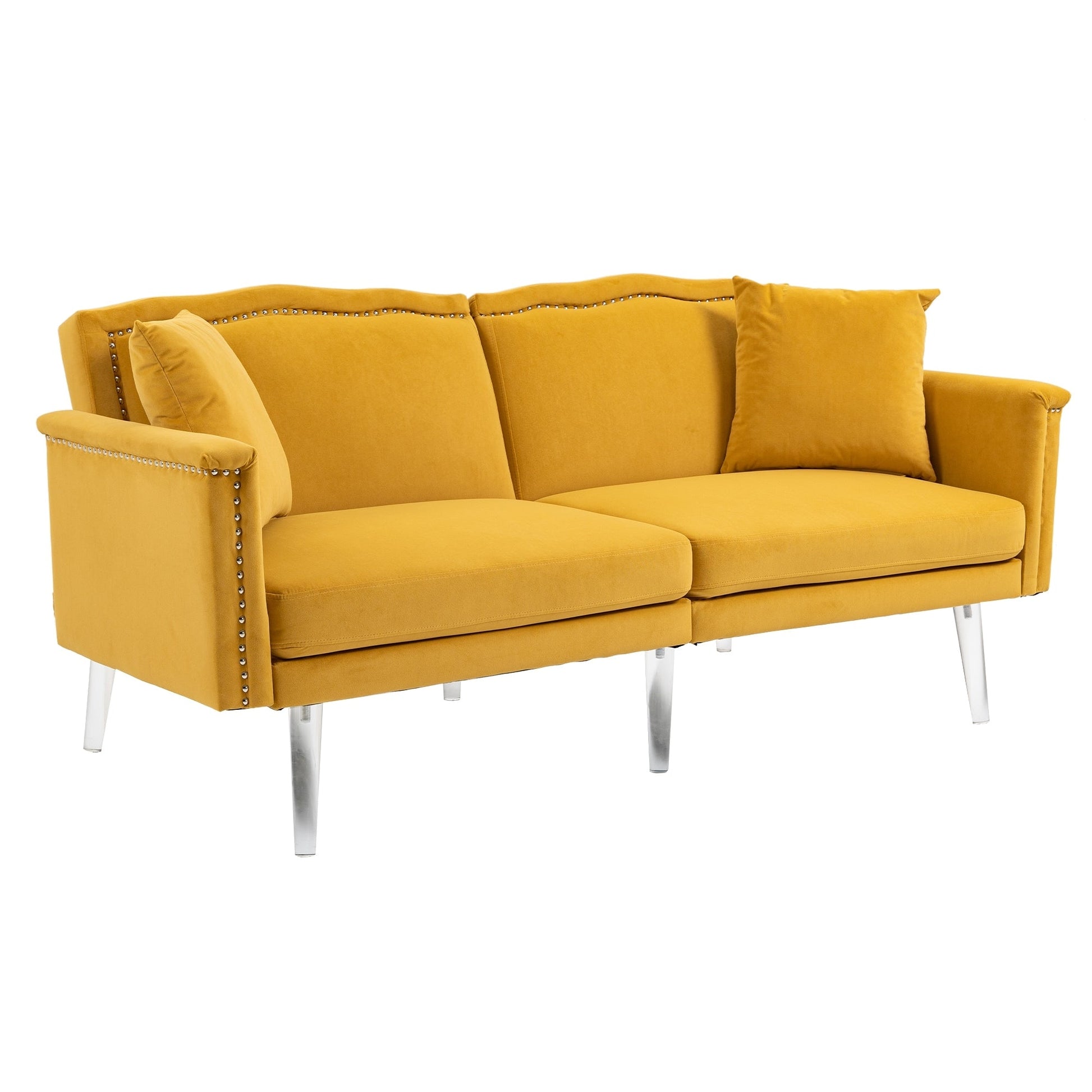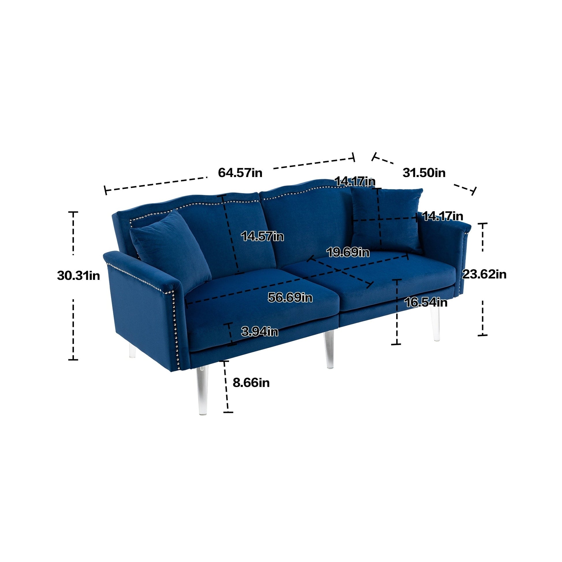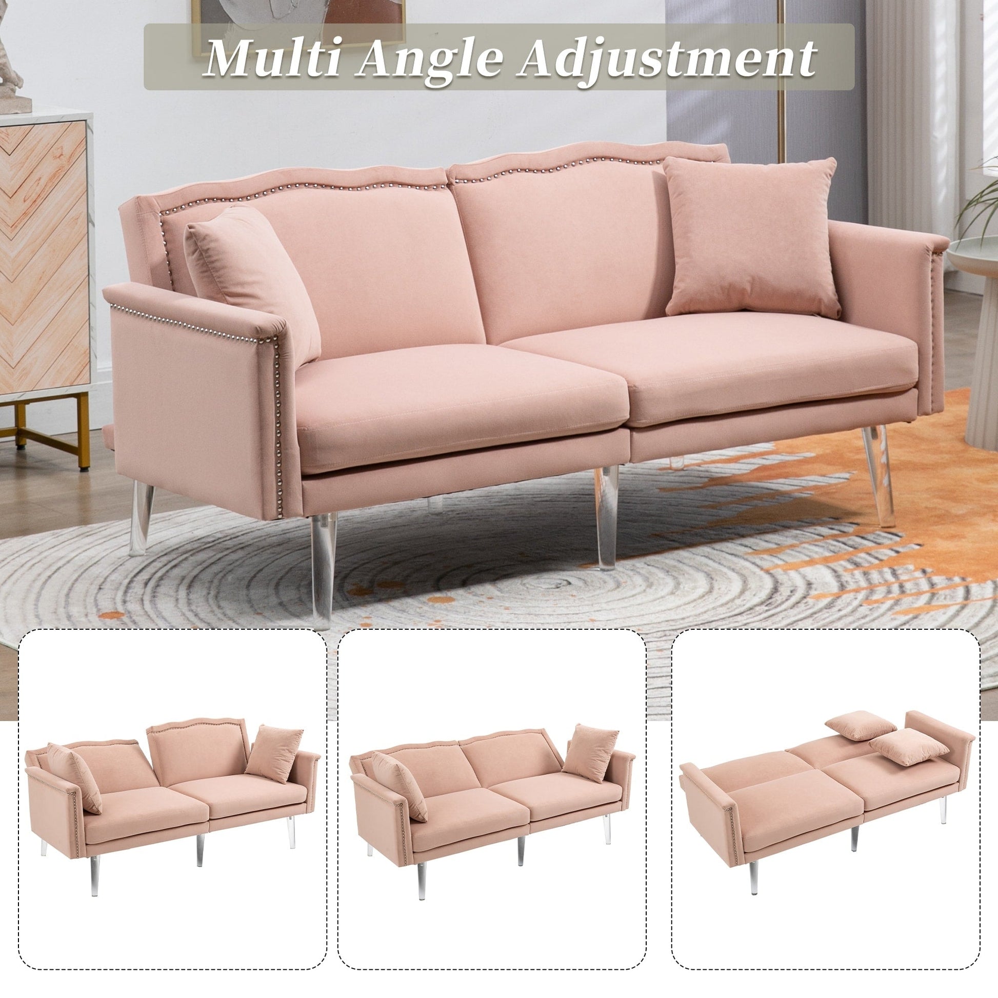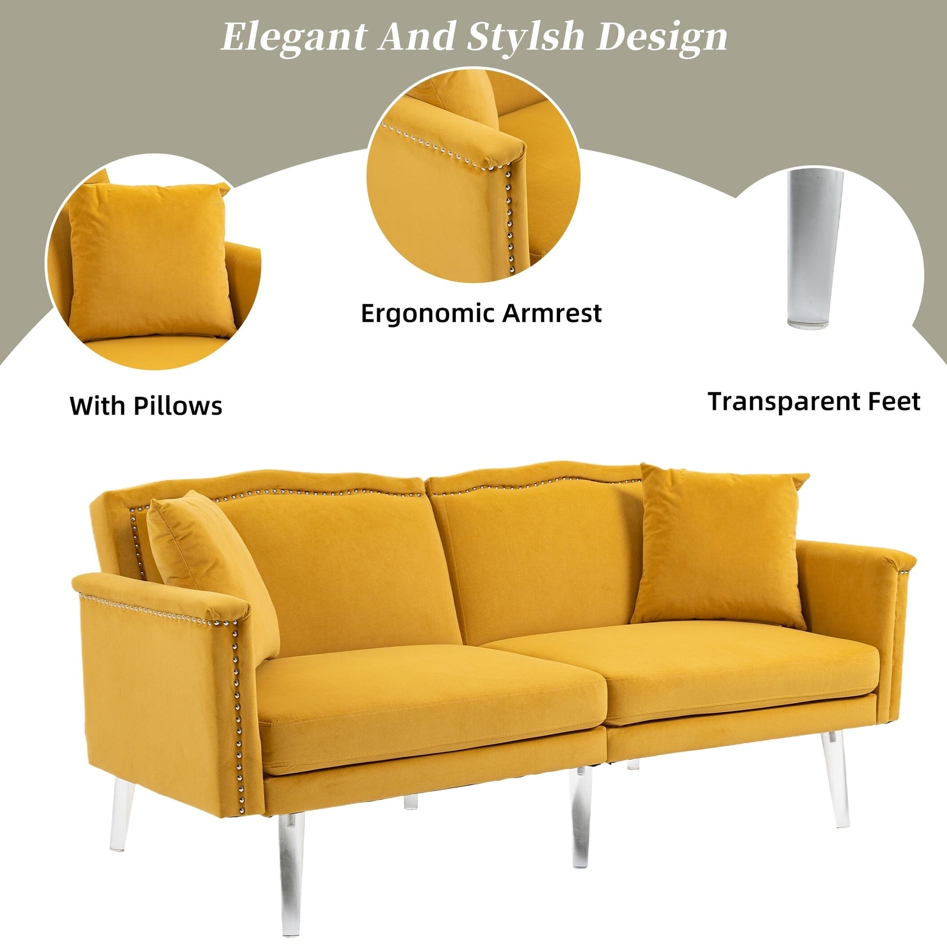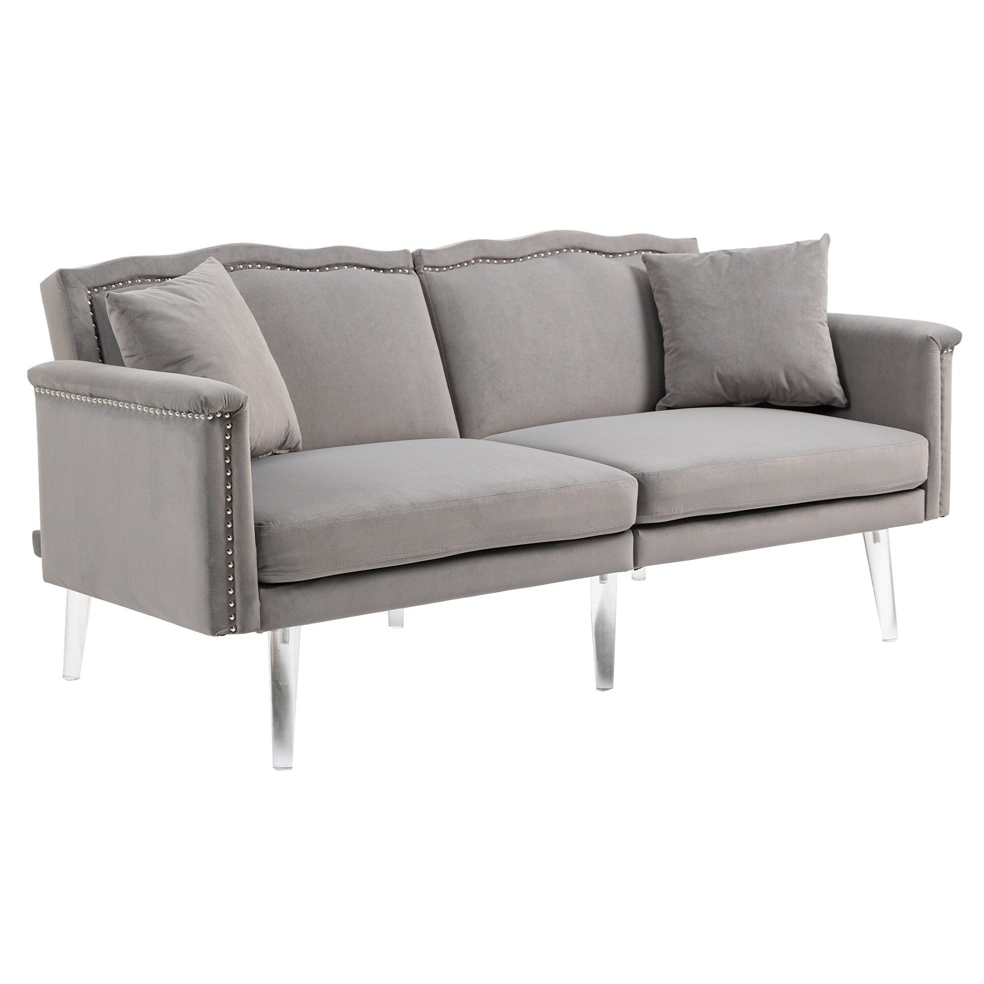 Velvet Upholstered Nailheads Loveseats Sleeper Sofa With Acrylic Feet