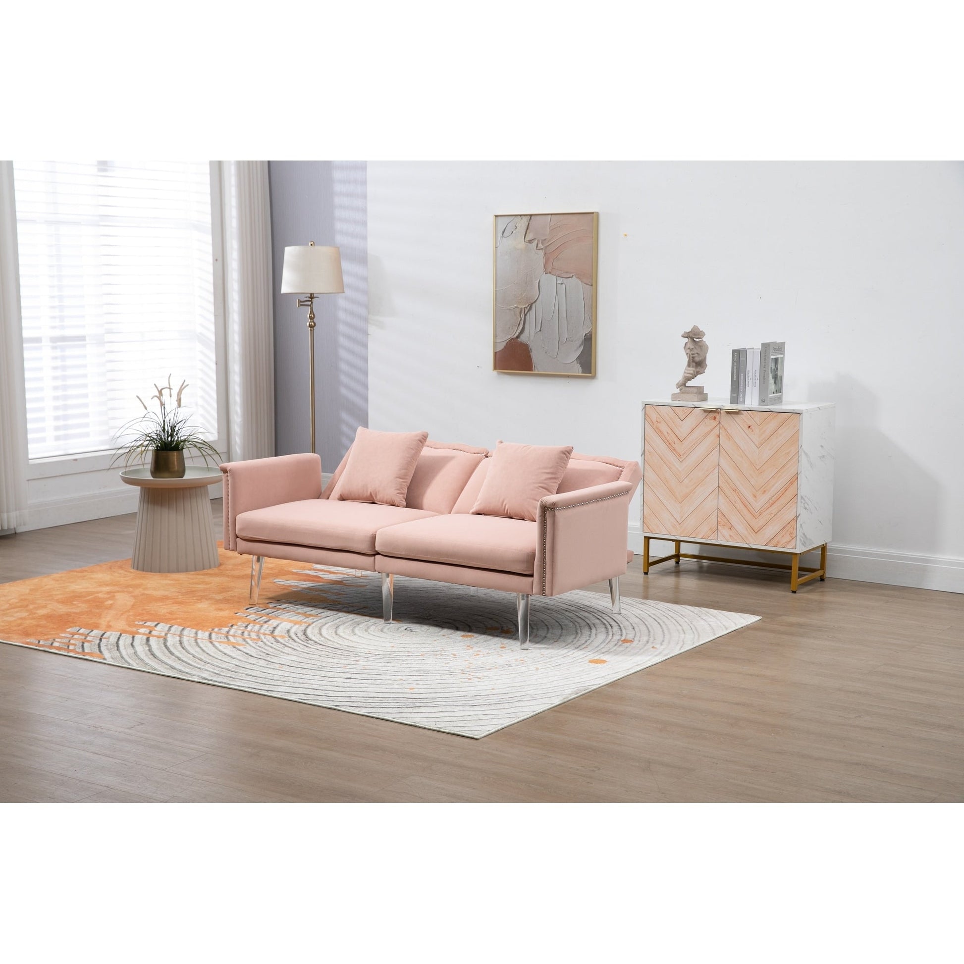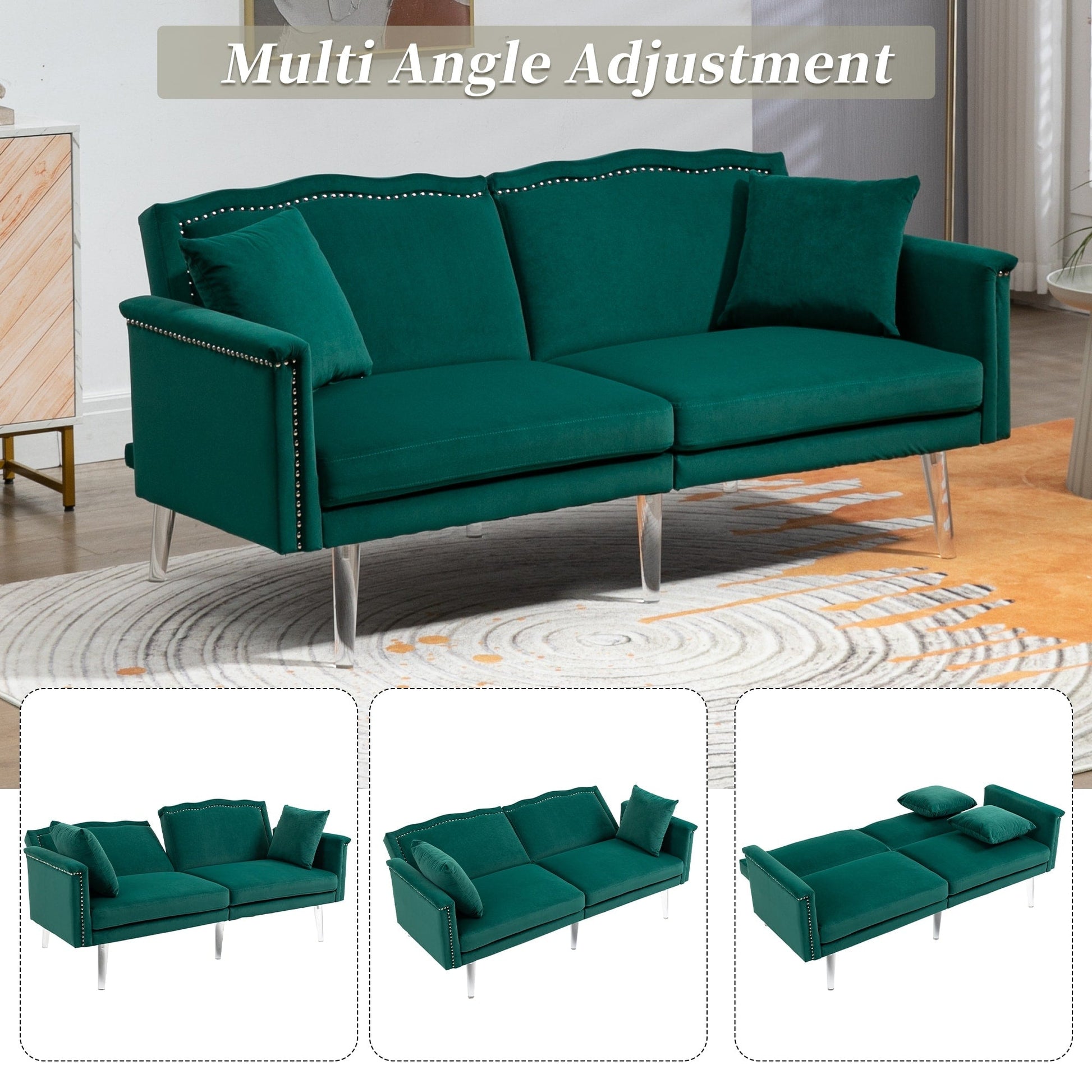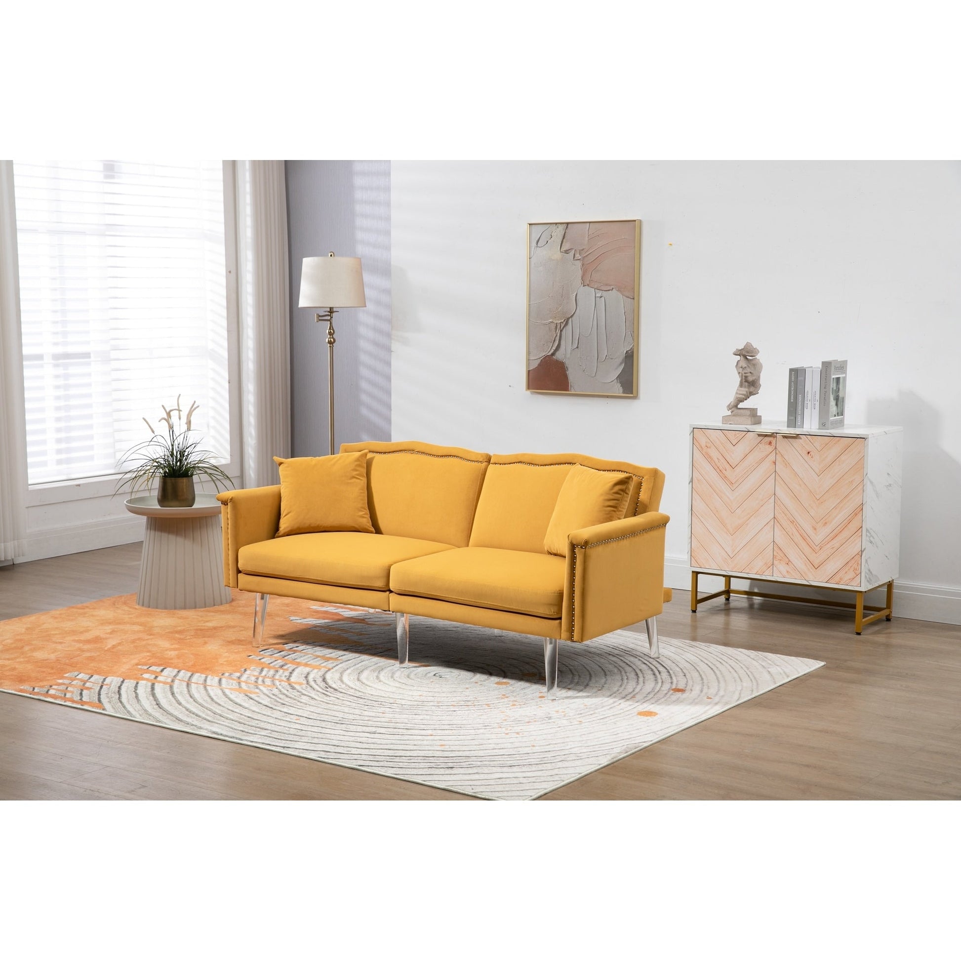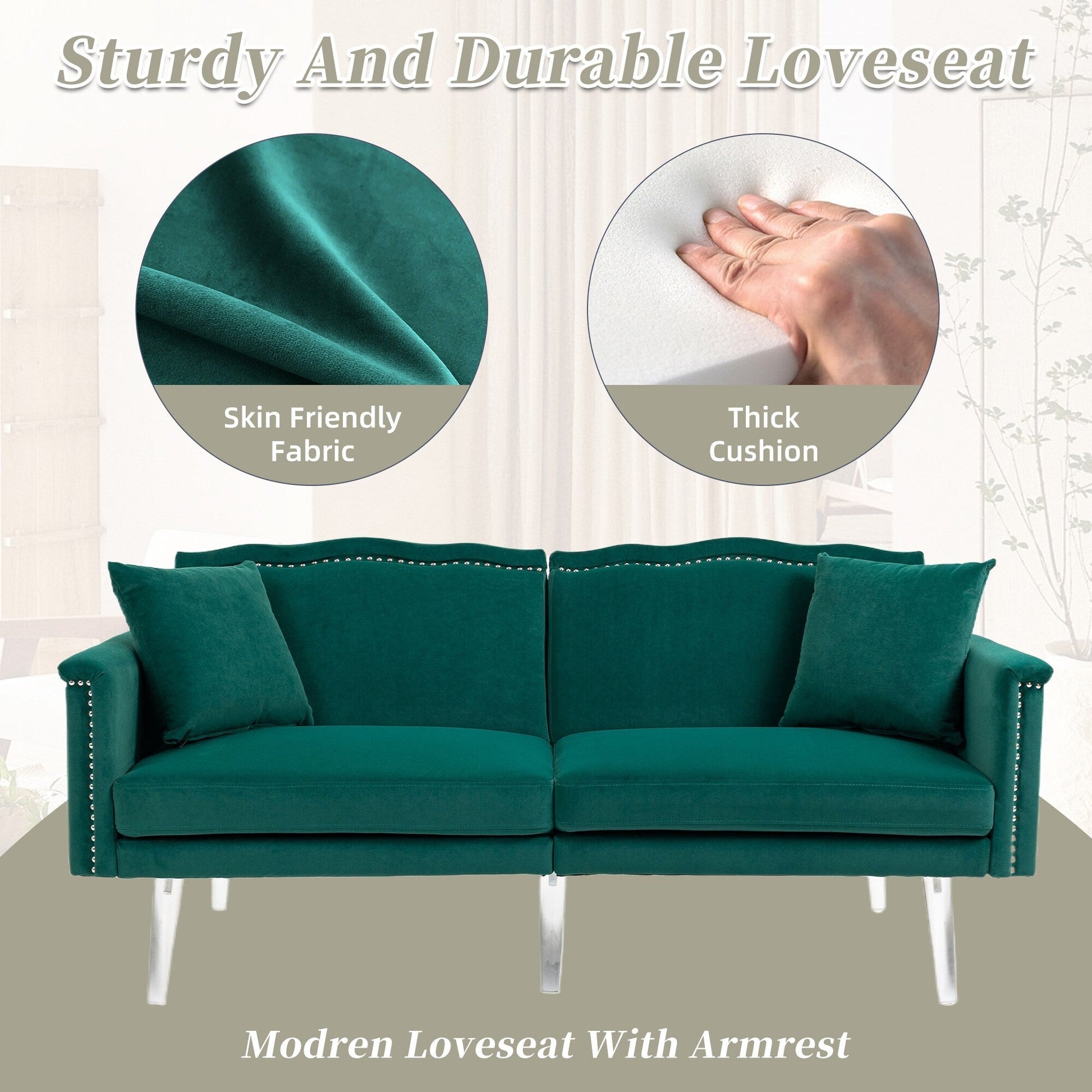 Velvet Upholstered Nailheads Loveseats Sleeper Sofa With Acrylic Feet