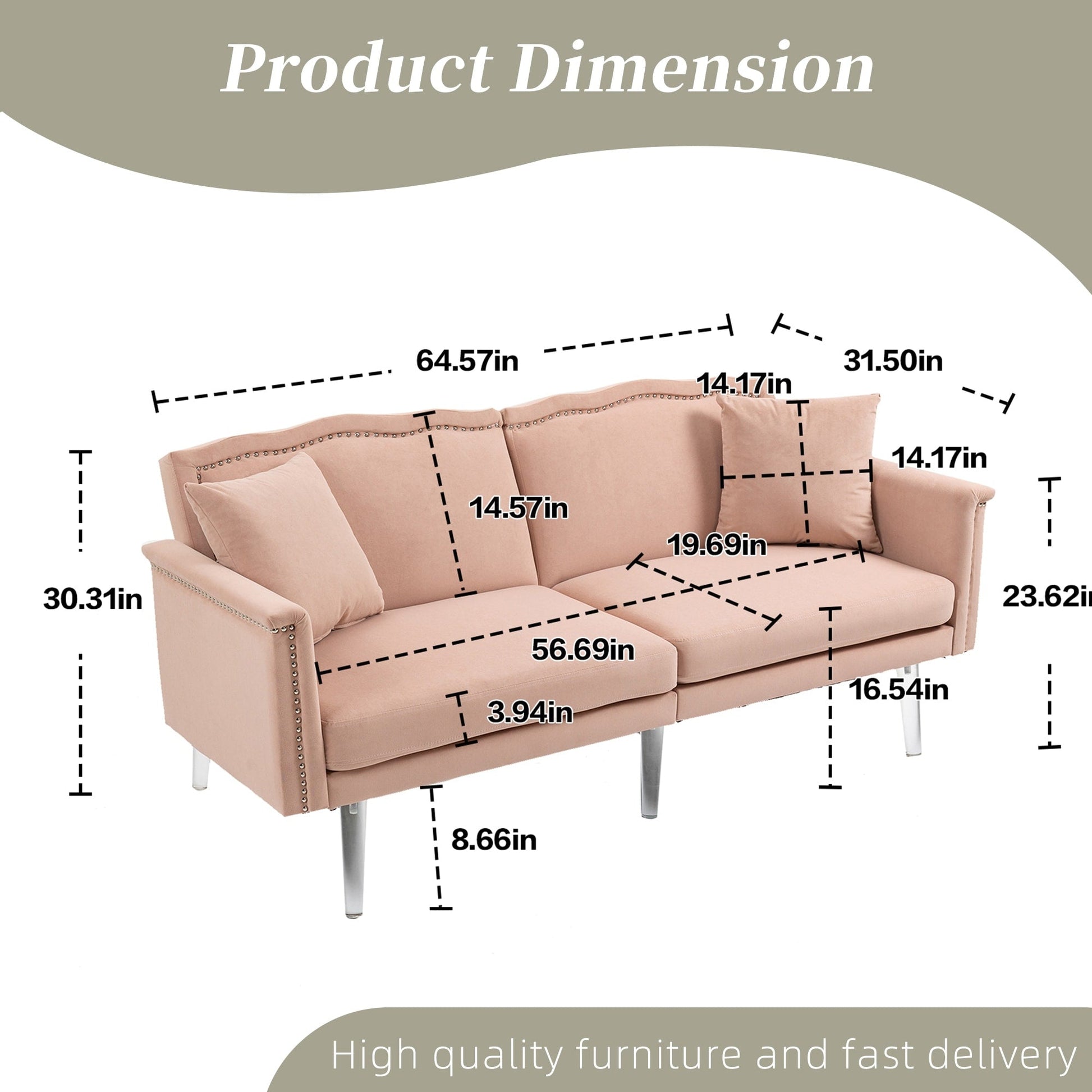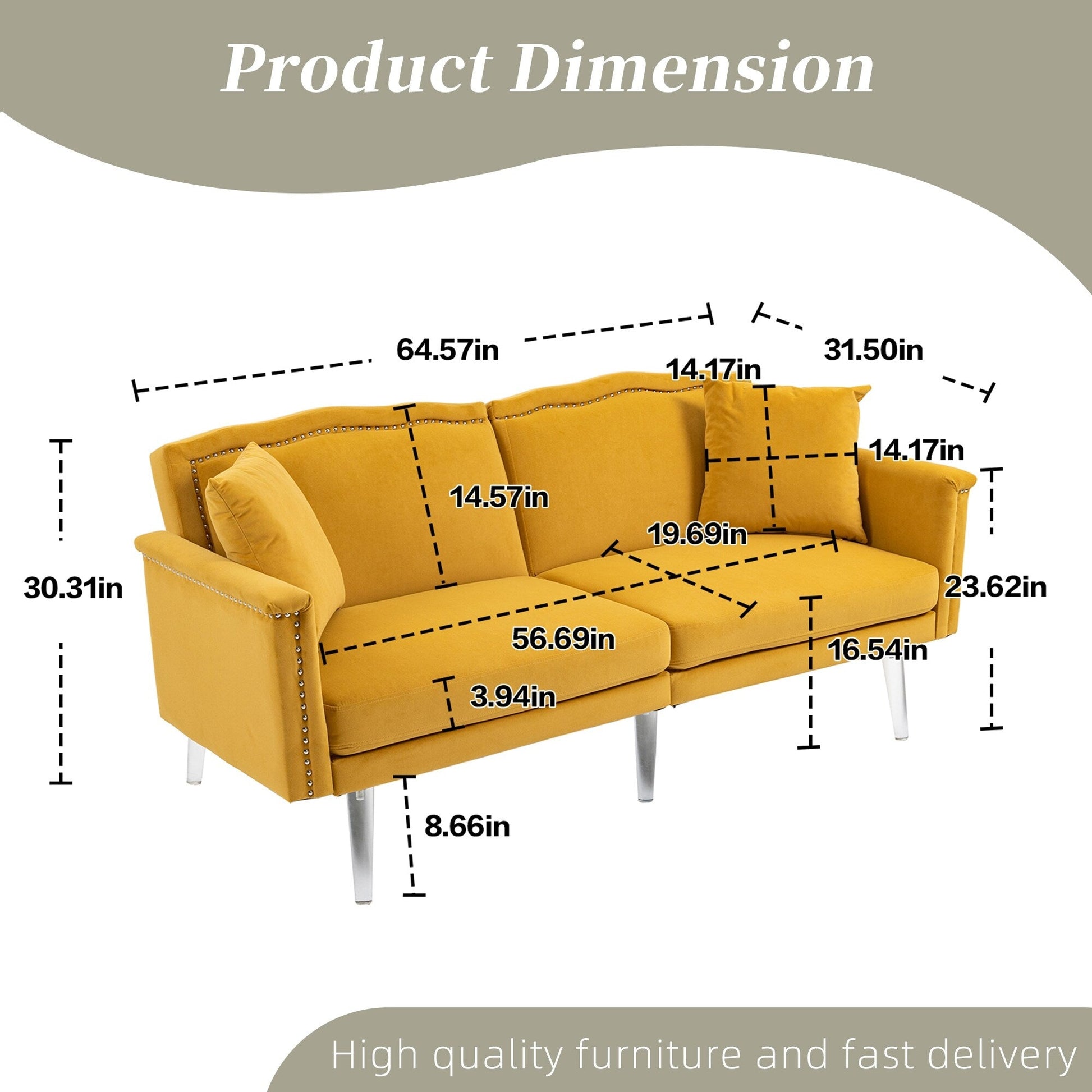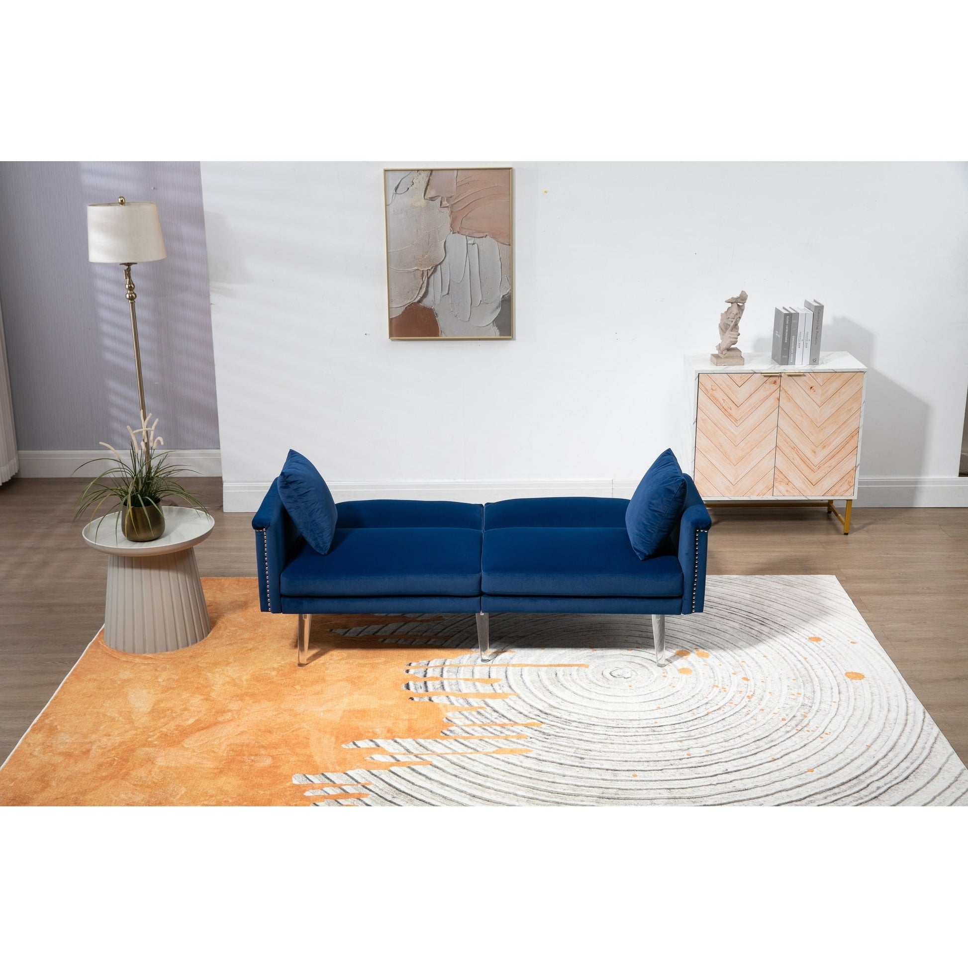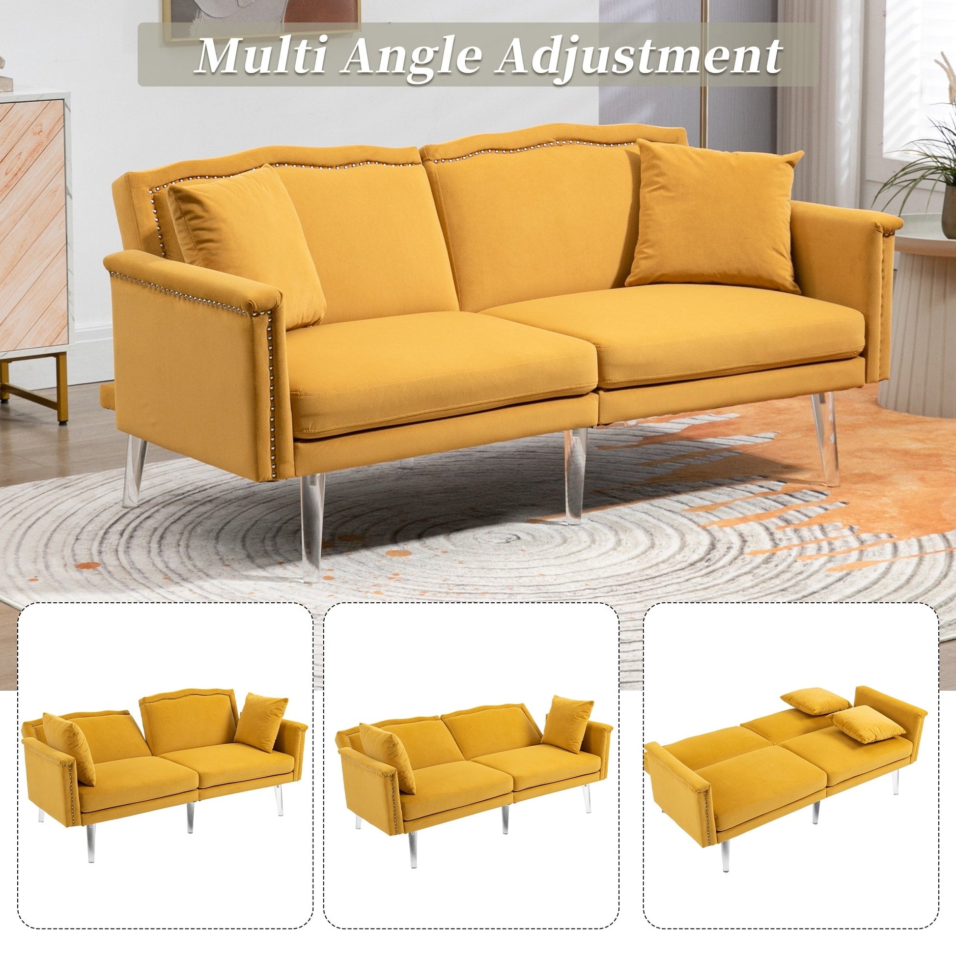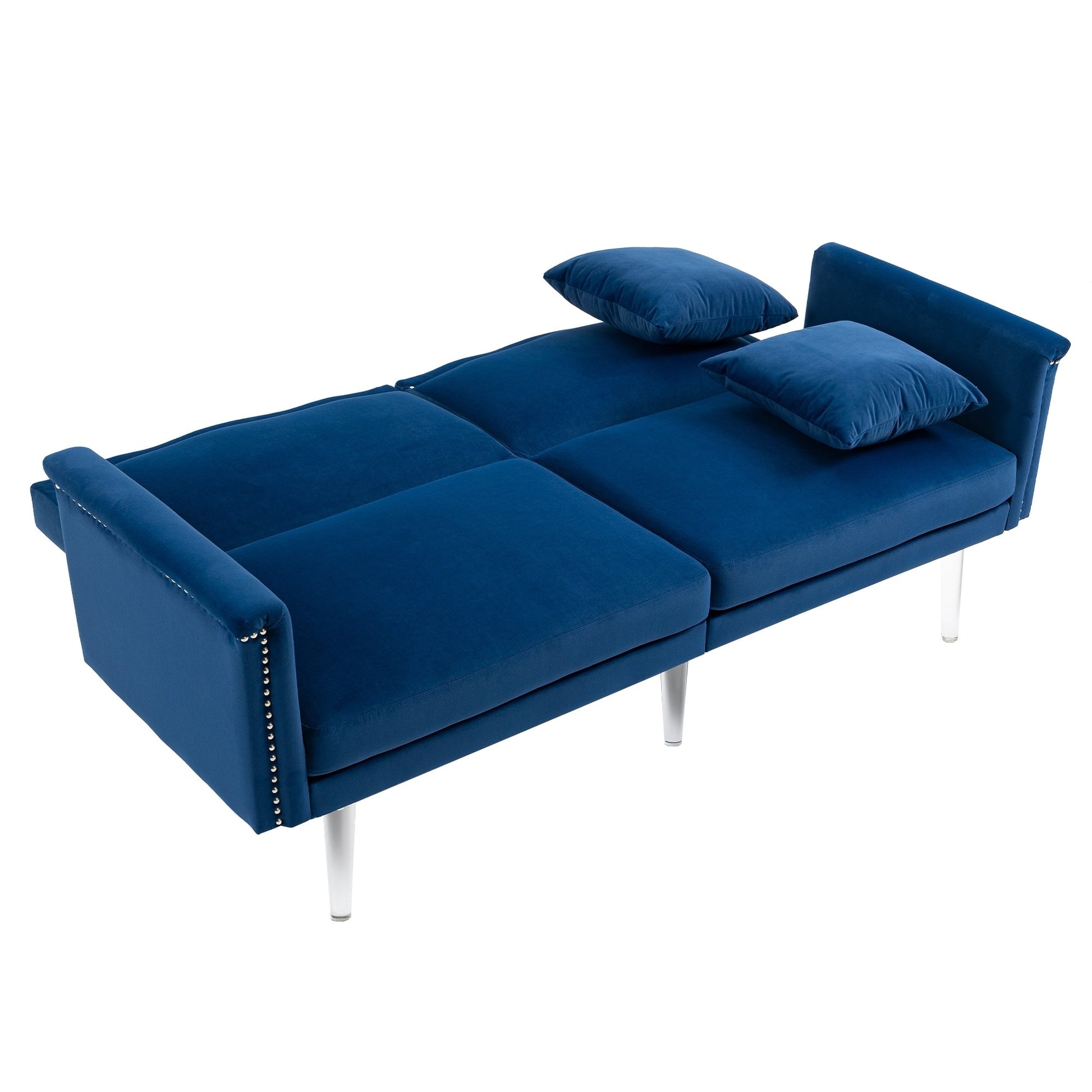 Velvet Upholstered Nailheads Loveseats Sleeper Sofa With Acrylic Feet