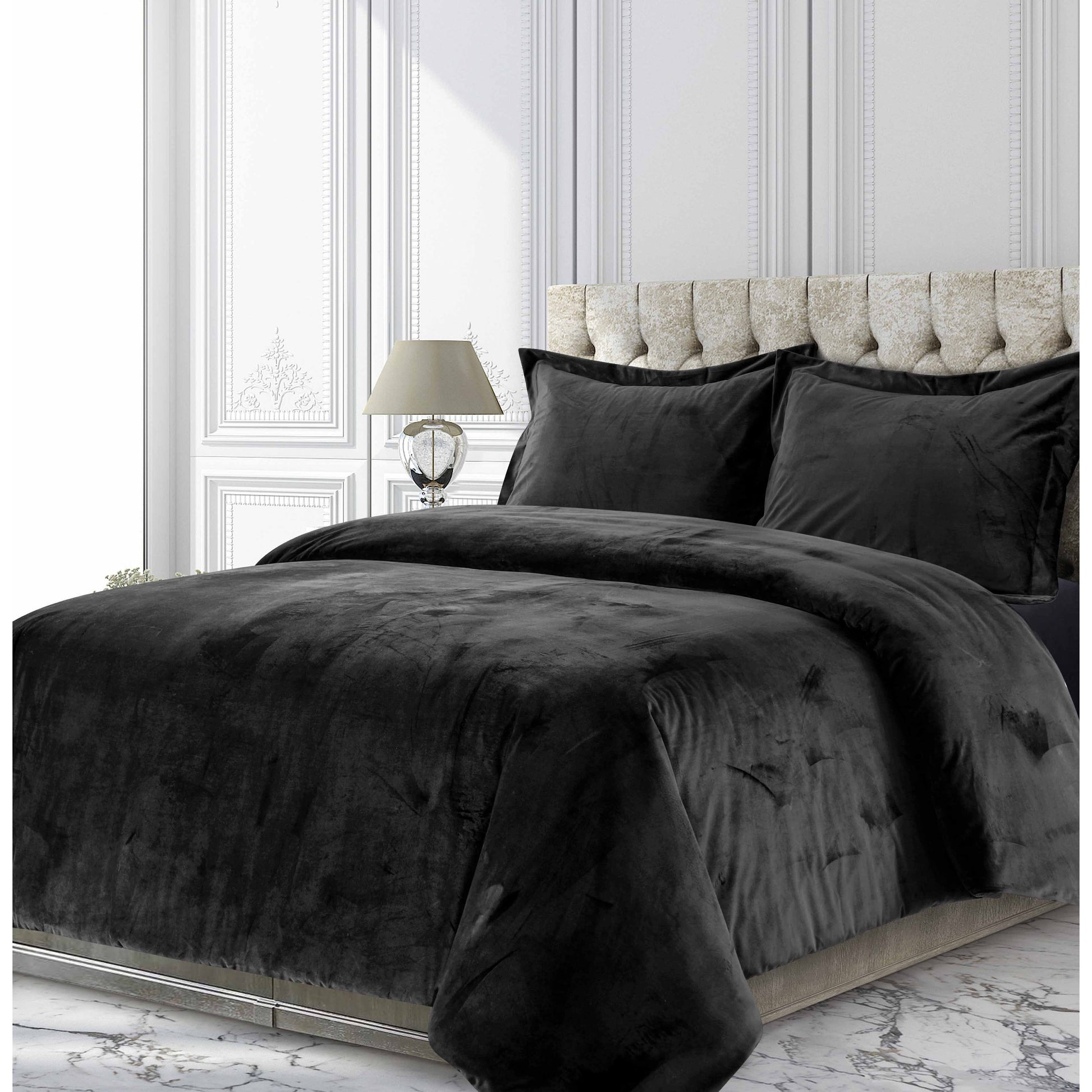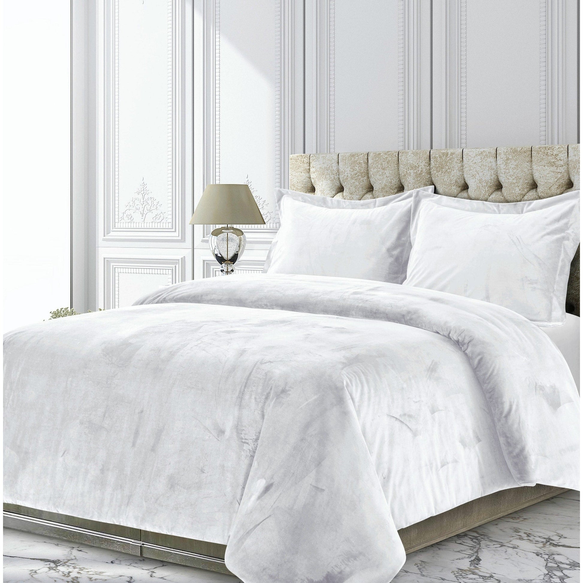 Indulge in the luxurious softness of our Venice Velvet Oversized Solid Duvet Cover Set. Crafted from supreme quality polyester velvet, this 3-piece set boasts a contemporary style with a solid pattern and is available in a range of soft and bold hues. The duvet cover includes internal corner ties that securely fasten your comforter through its corner loops, preventing it from shifting. The hidden button closure adds a sleek touch to this set. Easy to care for, this duvet cover set is machine washable.