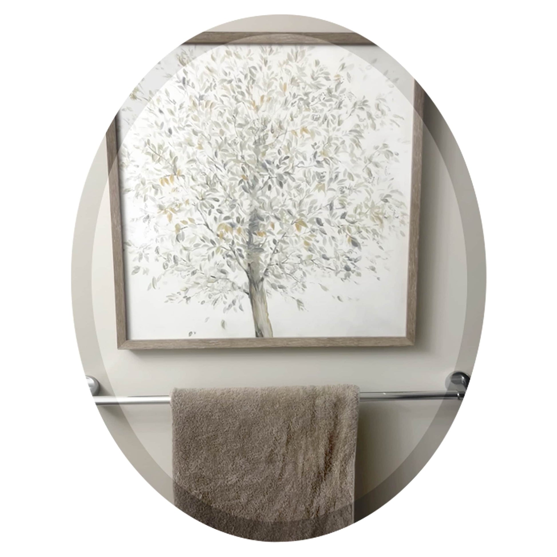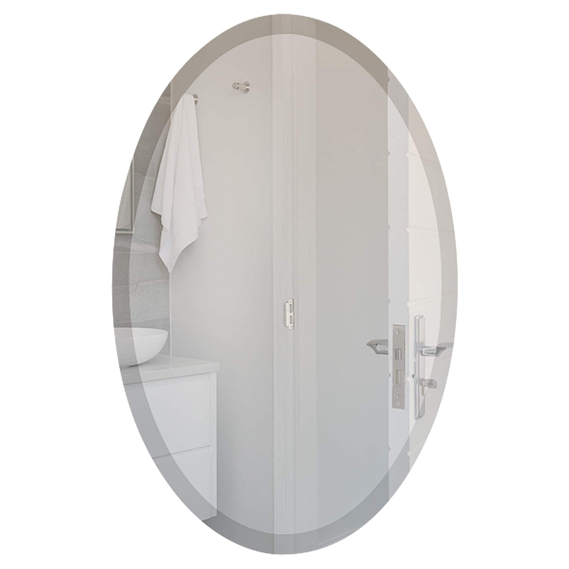- (Exquisite Design) - These oval mirrors bring a simple sophistication to any room and can serve as a focal point in formal rooms or in modern-style bathrooms. This unframed oval mirror will add a sense of contemporary and elegant class to small areas with limited wall space. These frameless oval mirrors offer a clean modern design that will freshen up the look of your bathroom, bedroom, or hallway. Each mirror offers both durability and style and comes in 9 sizes to fit almost any design.