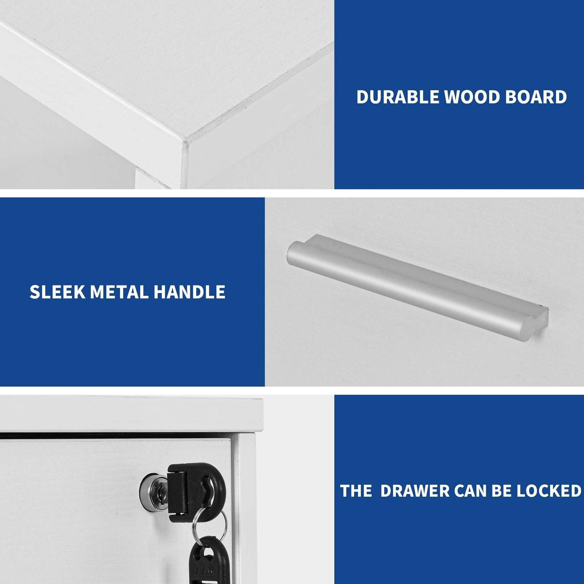 - 3. Keep Your Files and Valuables Secure: The bottom file drawer has hanging bars that can hold A4, letter and legal sized files in an organized way. The top drawer has a lock that protects your personal belongings from unauthorized access.