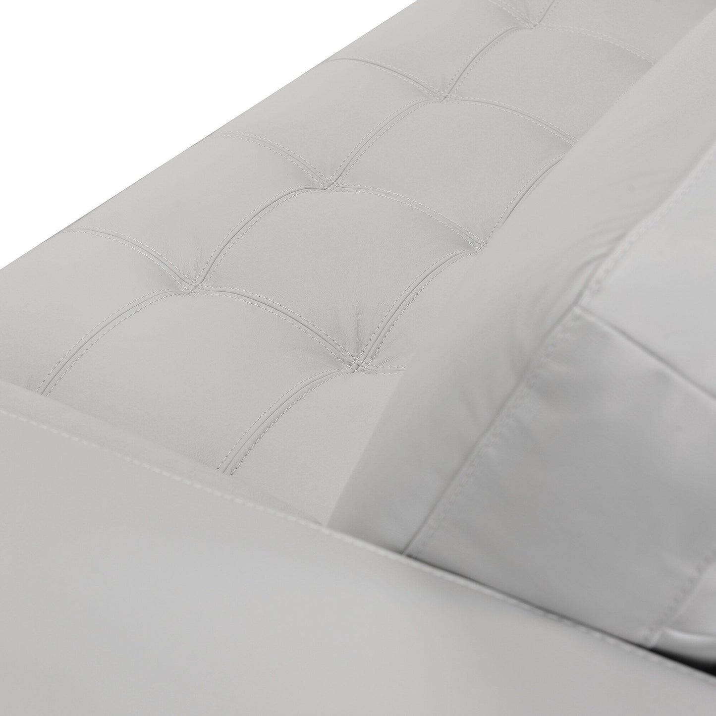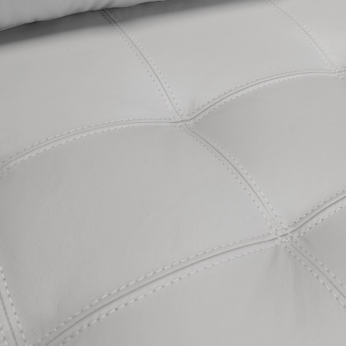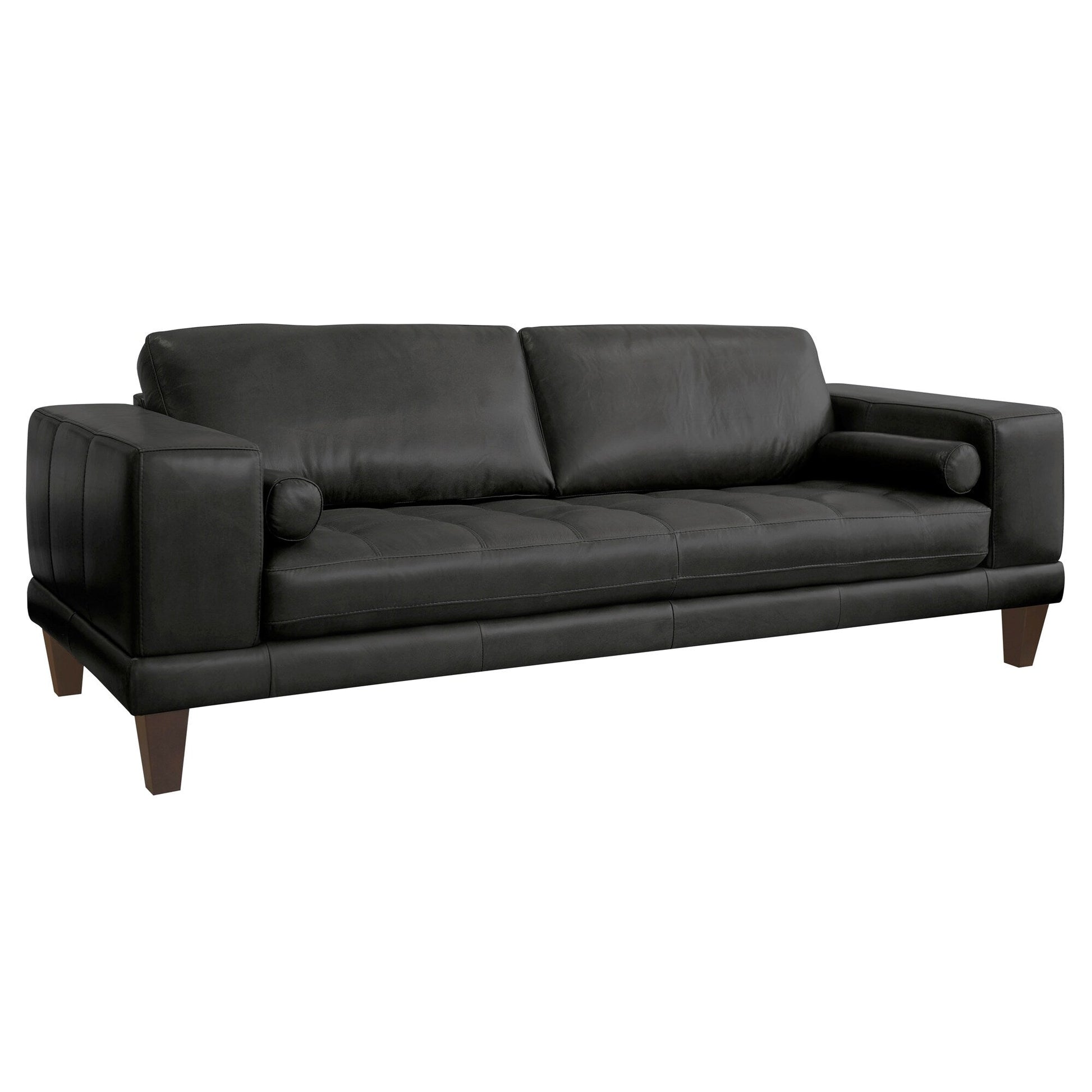This sleek sofa will lend a vogue modern flair to your living room. This sofa is fully upholstered in genuine cowhide leather that comes in your choice of black or grey. Two bolster pillows are included to complete the design and increase comfort.