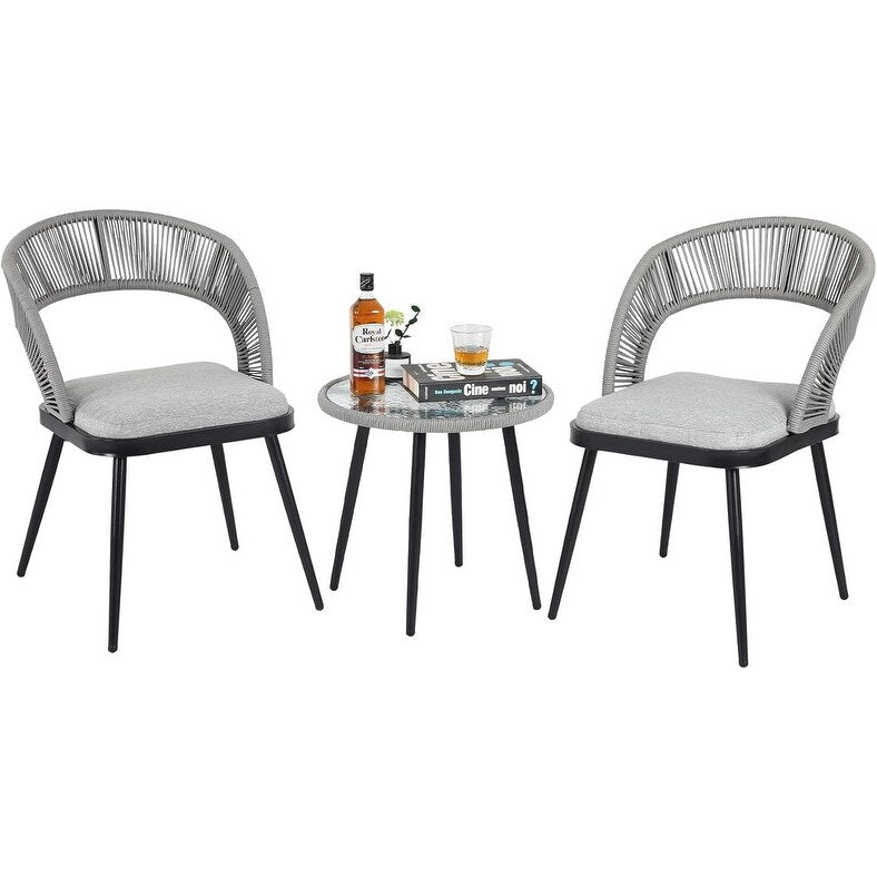 XINMICS 3 Pieces Handmade Rope Woven Cutout Backrest Patio Furniture