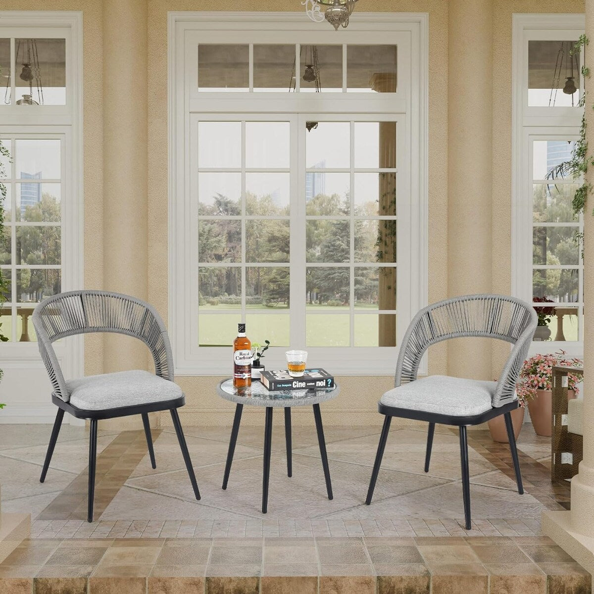 - VERSATILE STYLE: Simple Scandinavian style makes this outdoor chair set can be easily integrated into your home decor style, whether it is a pool, terrace or garden this outdoor furniture set can give the space a dynamic style.