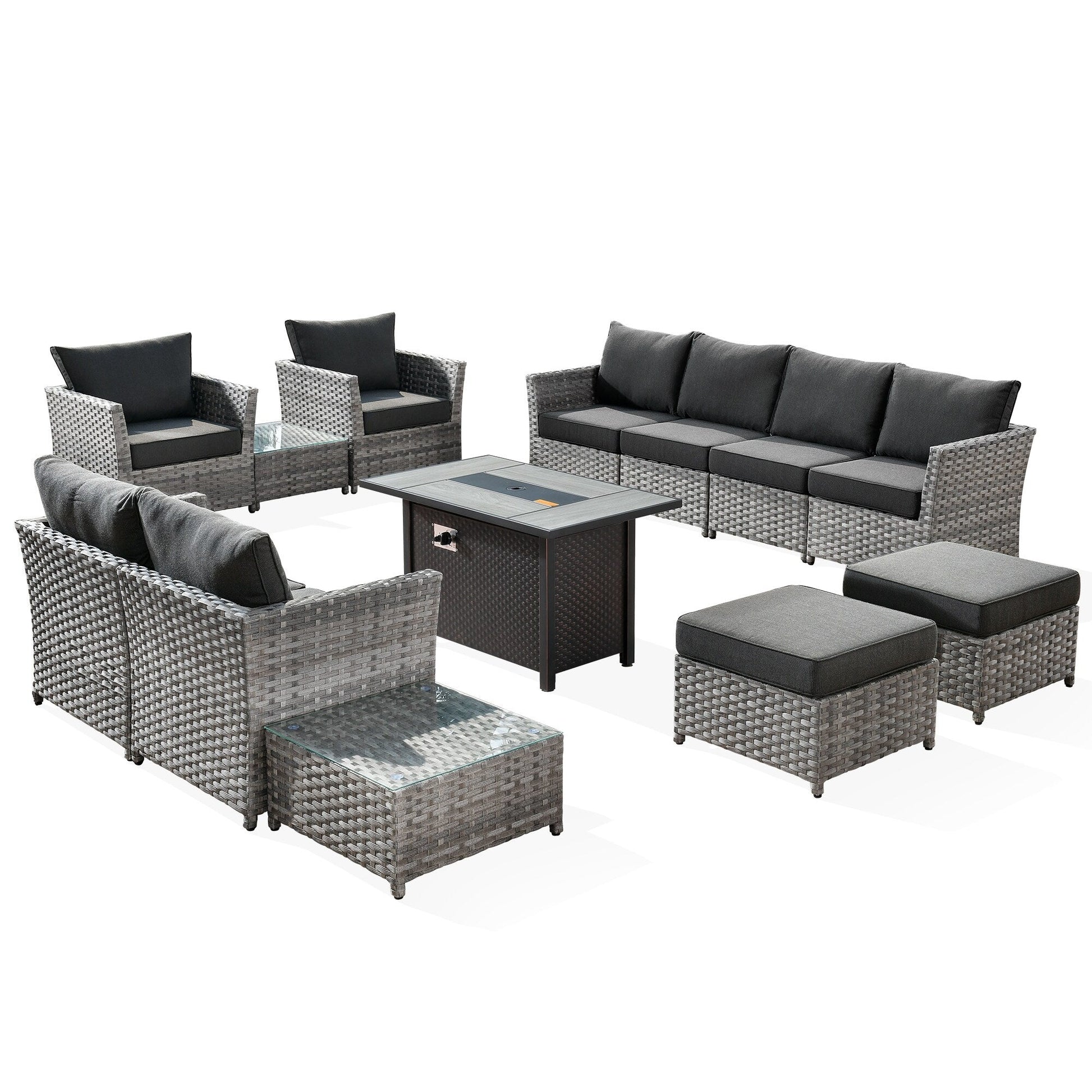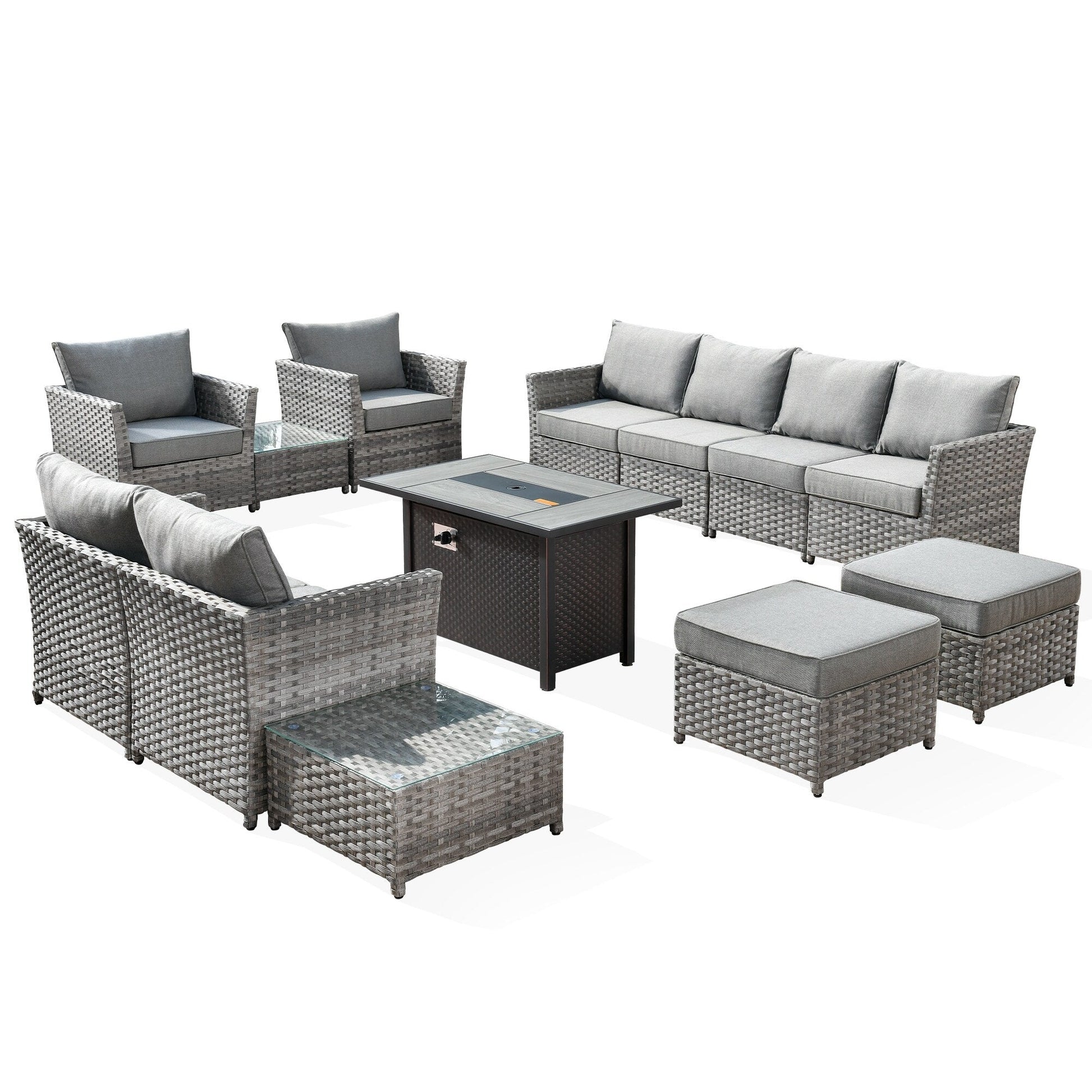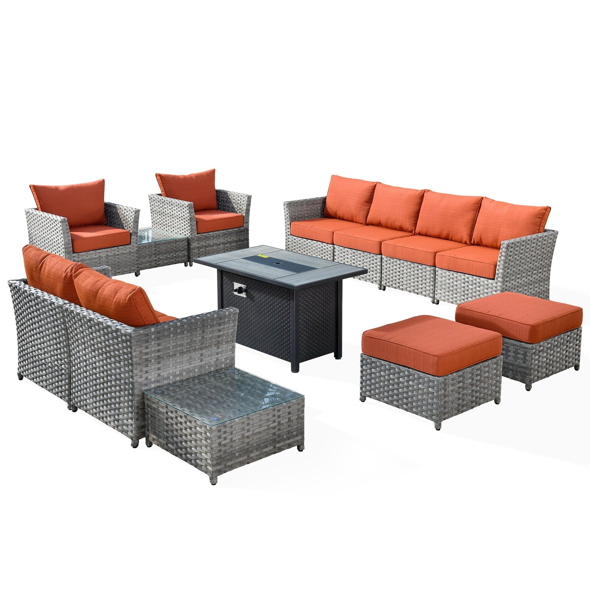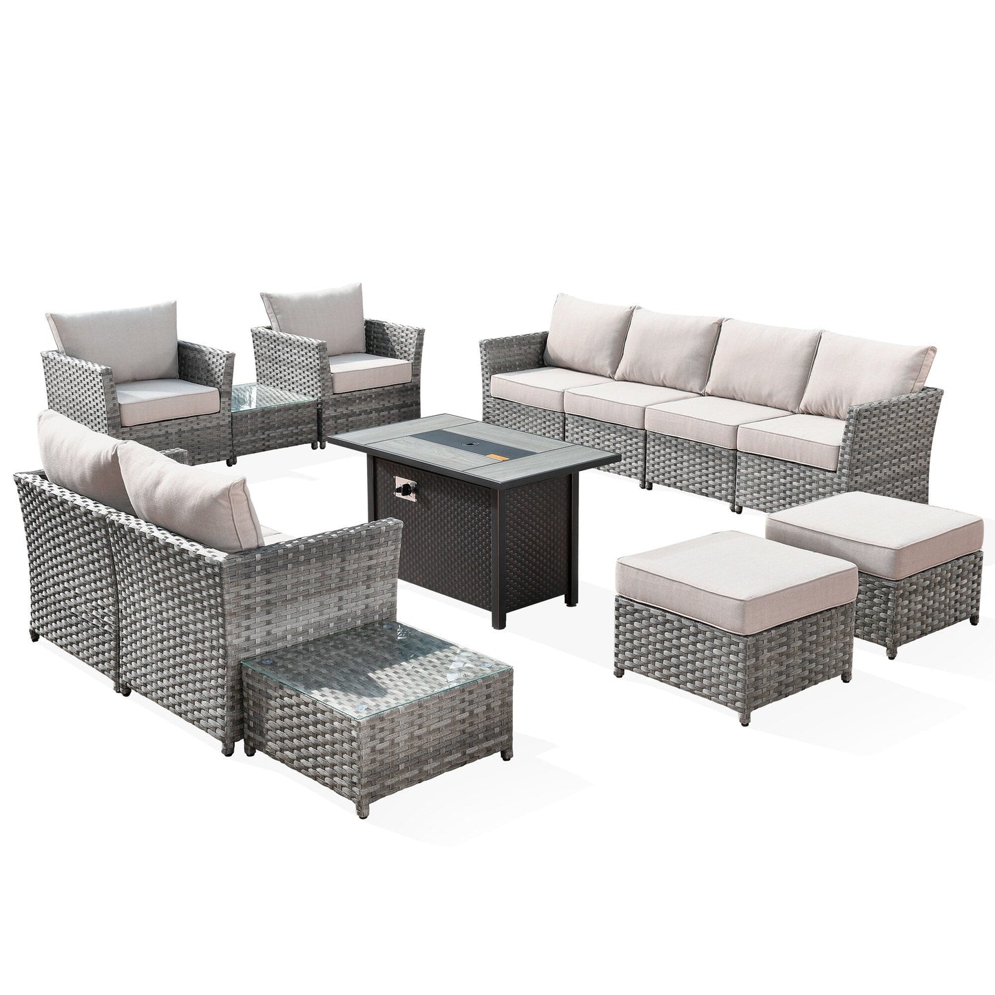 XIZZI 13-piece Outdoor Patio Wicker Furniture Set with Fire Table