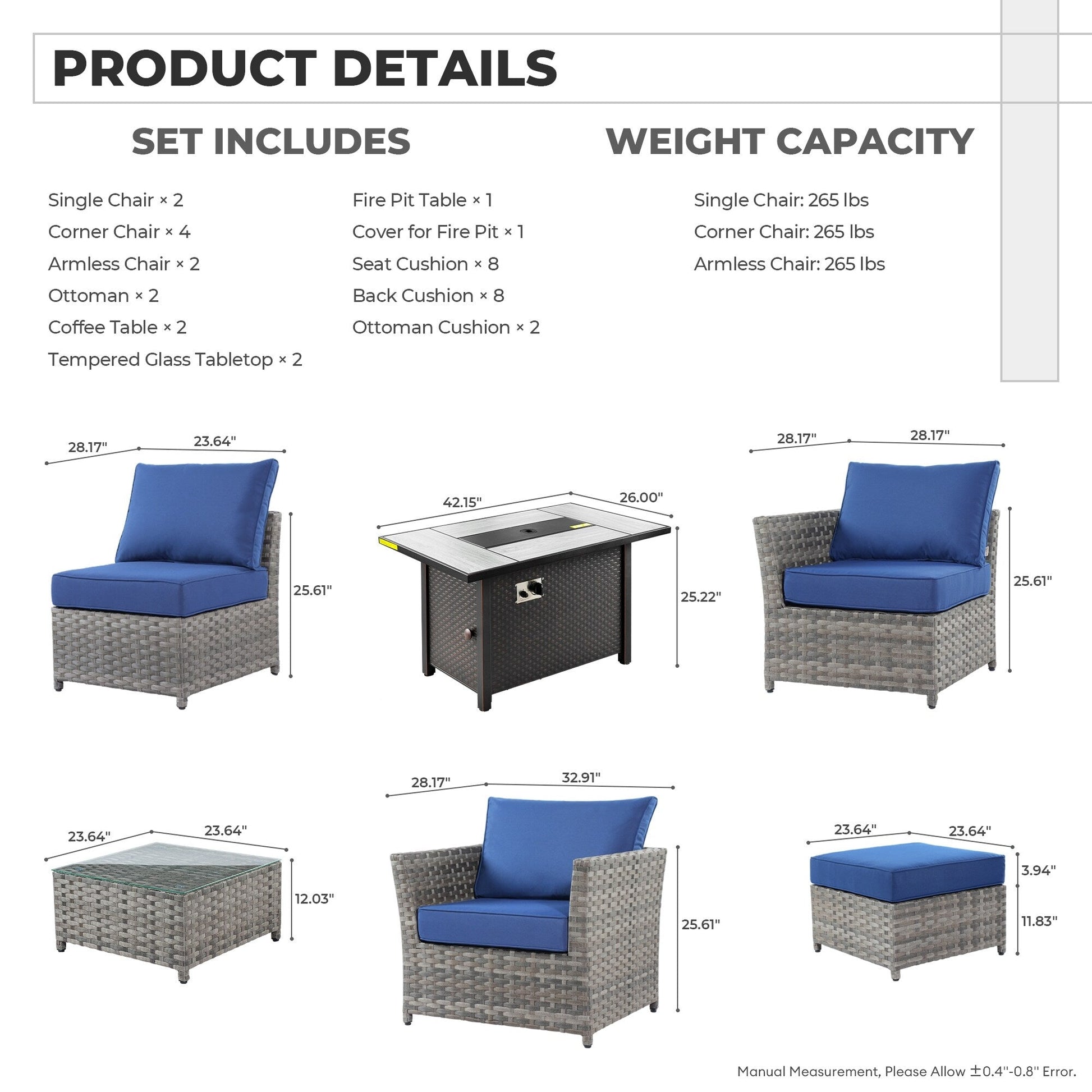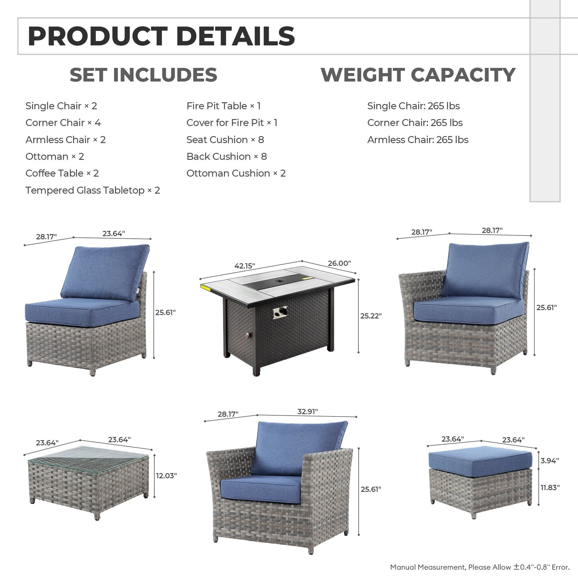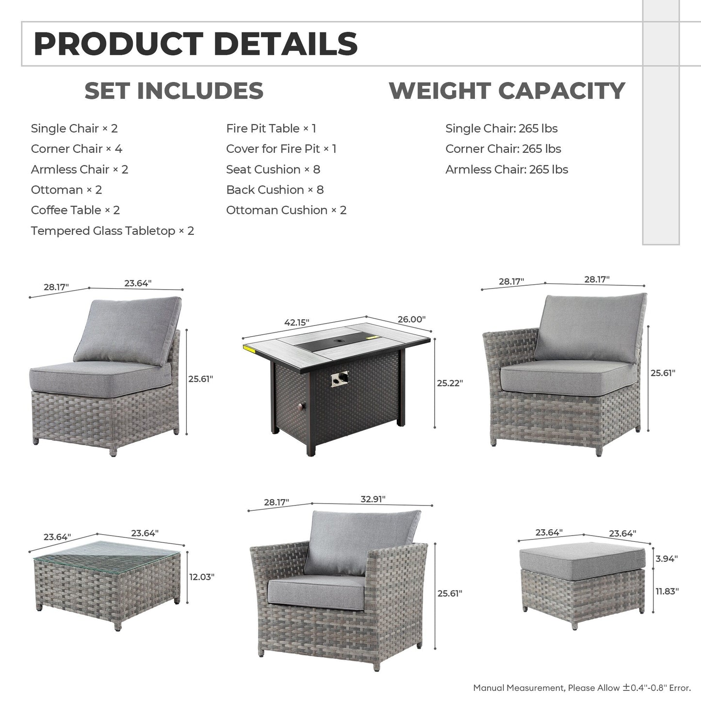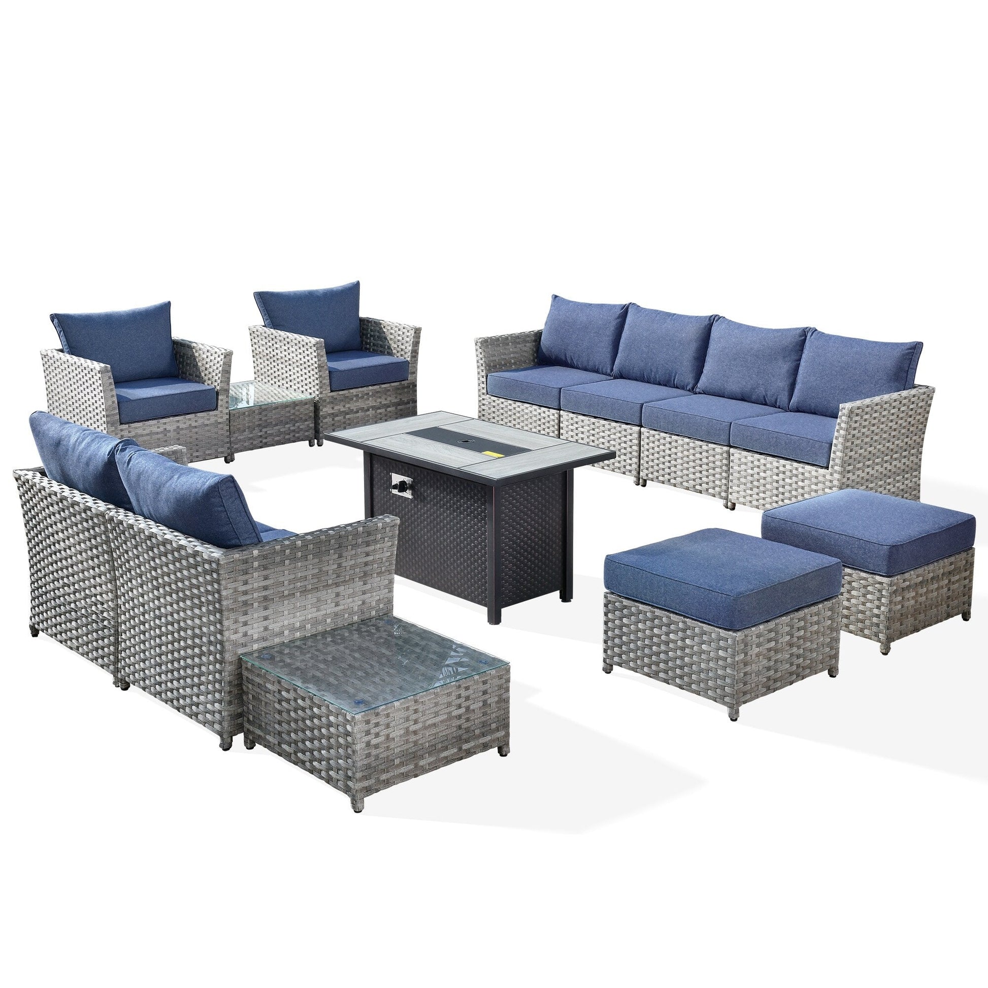XIZZI 13-piece Outdoor Patio Wicker Furniture Set with Fire Table