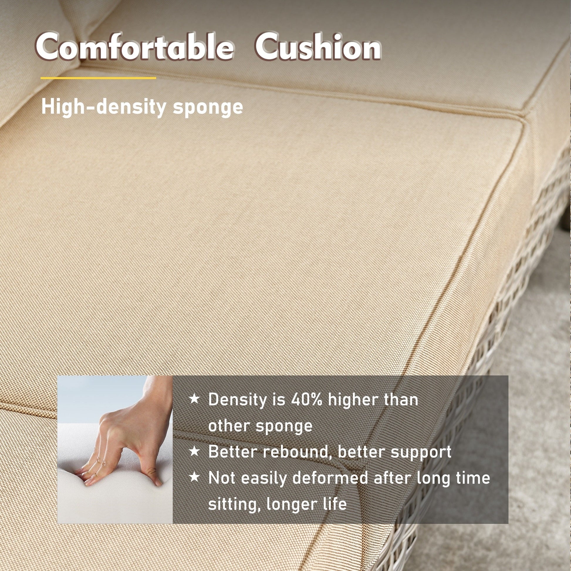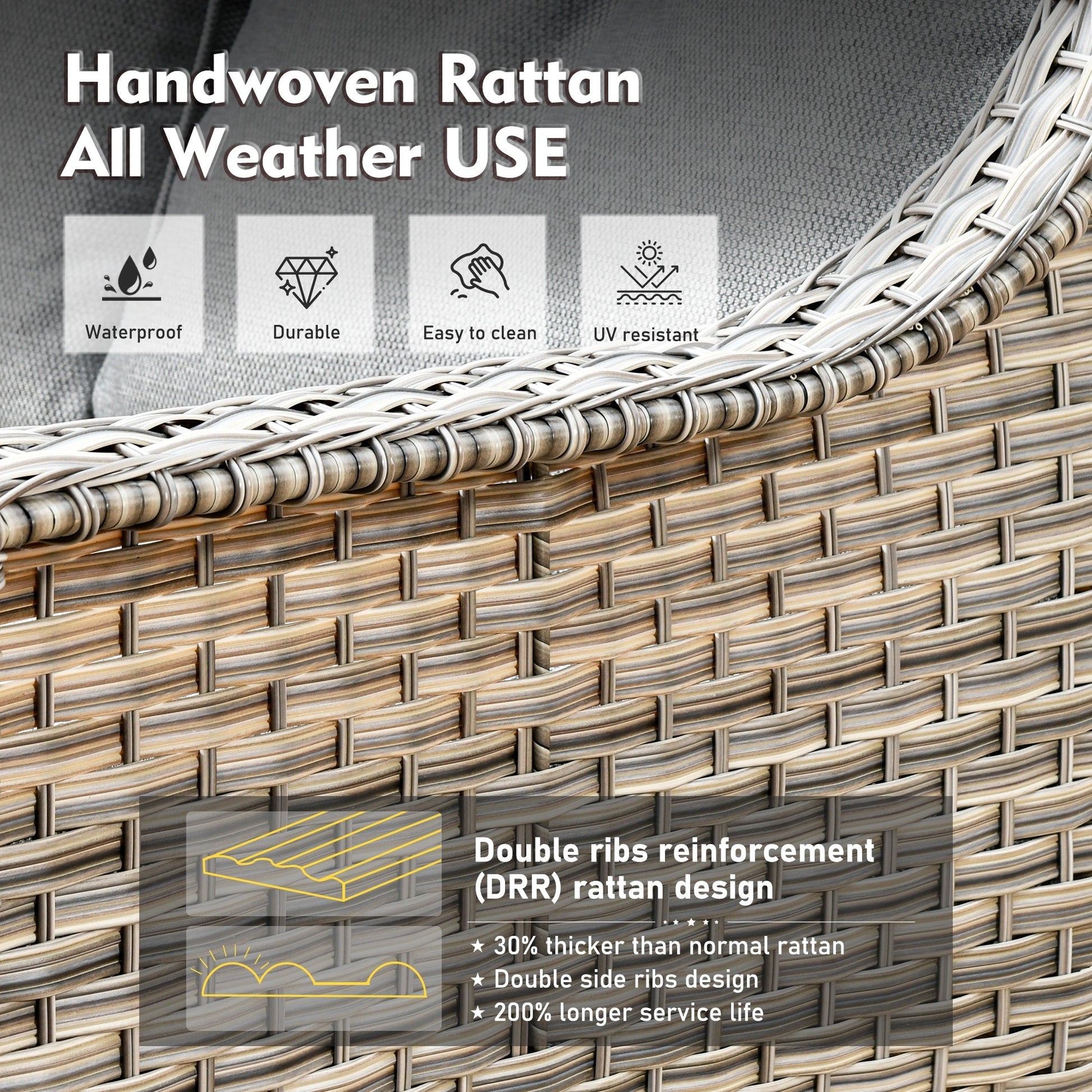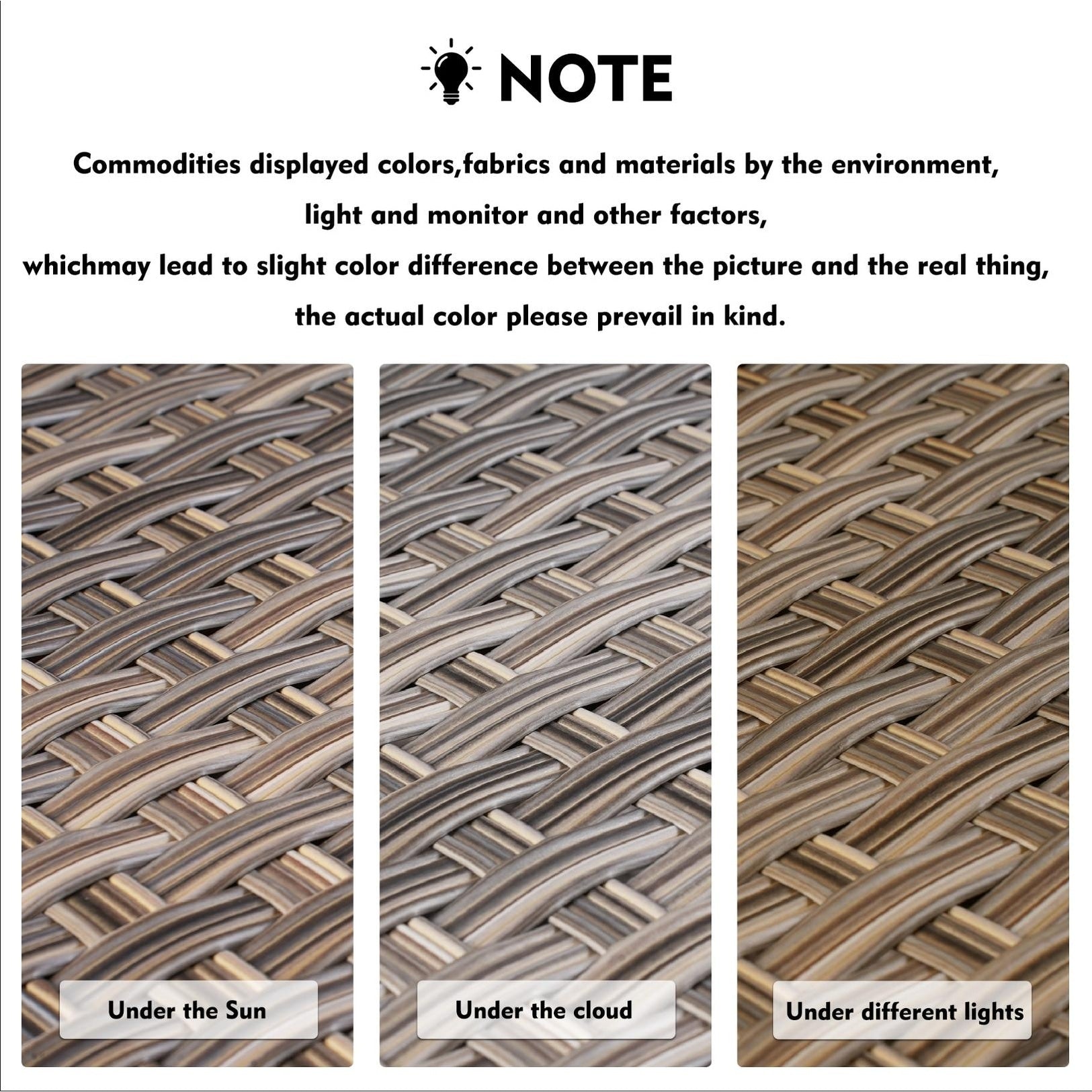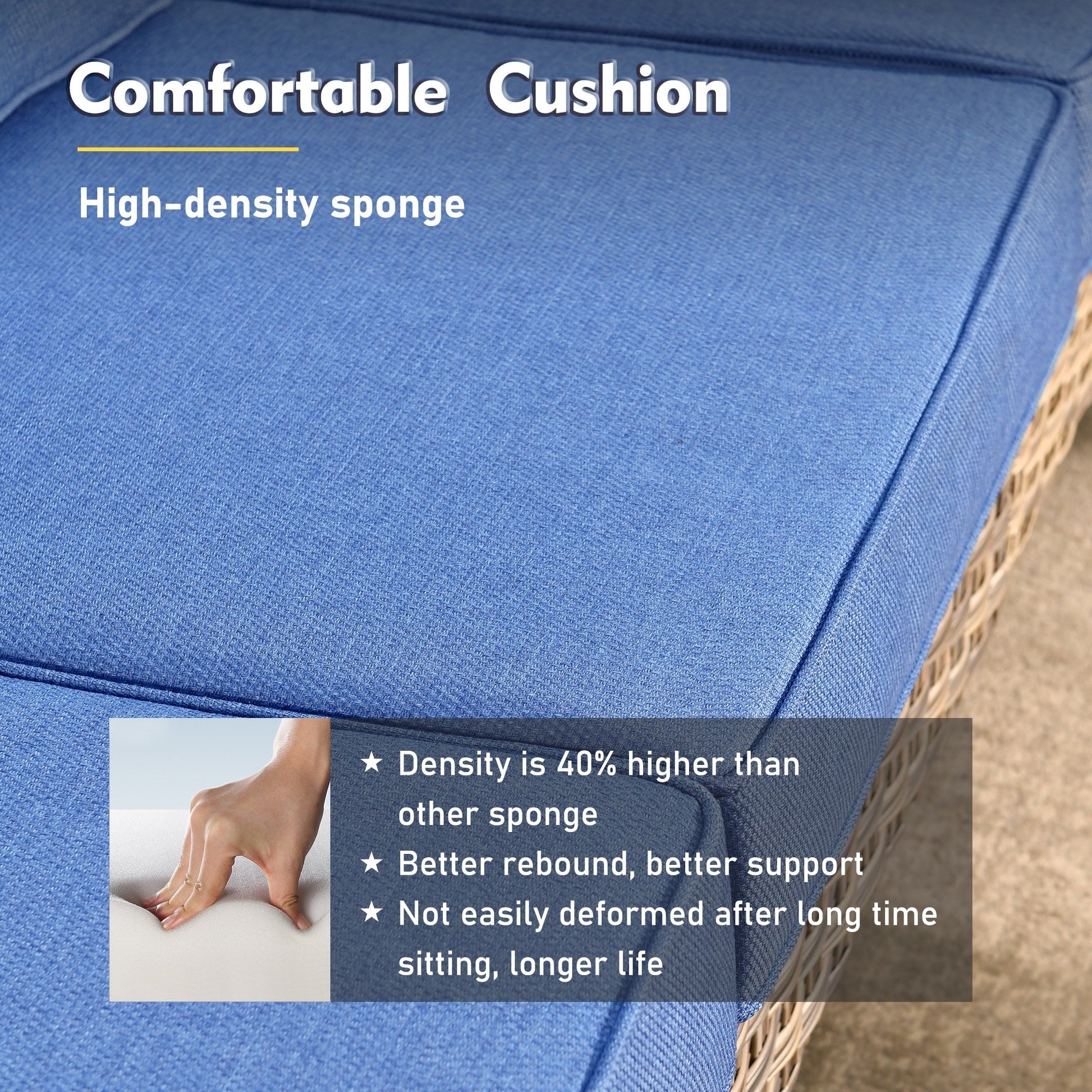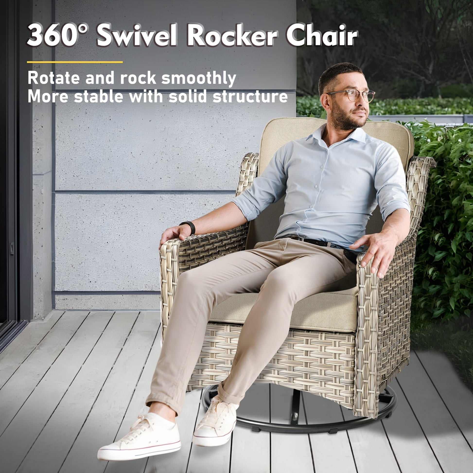 Experience the durability and reliability of this 8-piece rattan wicker outdoor furniture conversation seating set. Crafted with premium PE rattan and a sturdy powder-coated steel frame, ensuring years of outdoor enjoyment. Enjoy ultimate comfort with the high-density sponge seat cushions and tufted design fluffy back cushion. High quality yarn-dyed fabric is thicker and good texture, the splash-proof material ensures hassle-free maintenance. Swivel rocker with a solid round base, ensure more stable rocking and swivel function. Create a gently rocking and freely 360°rotation for you to enjoy.?