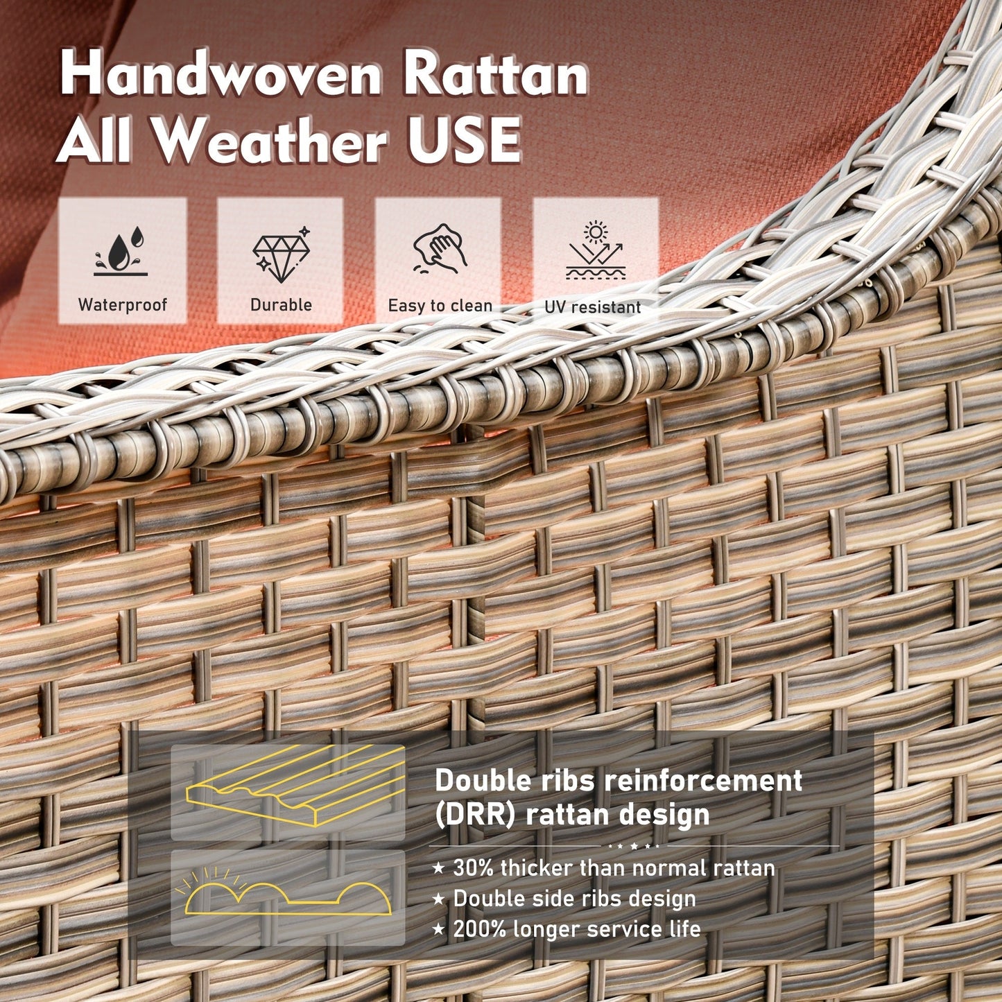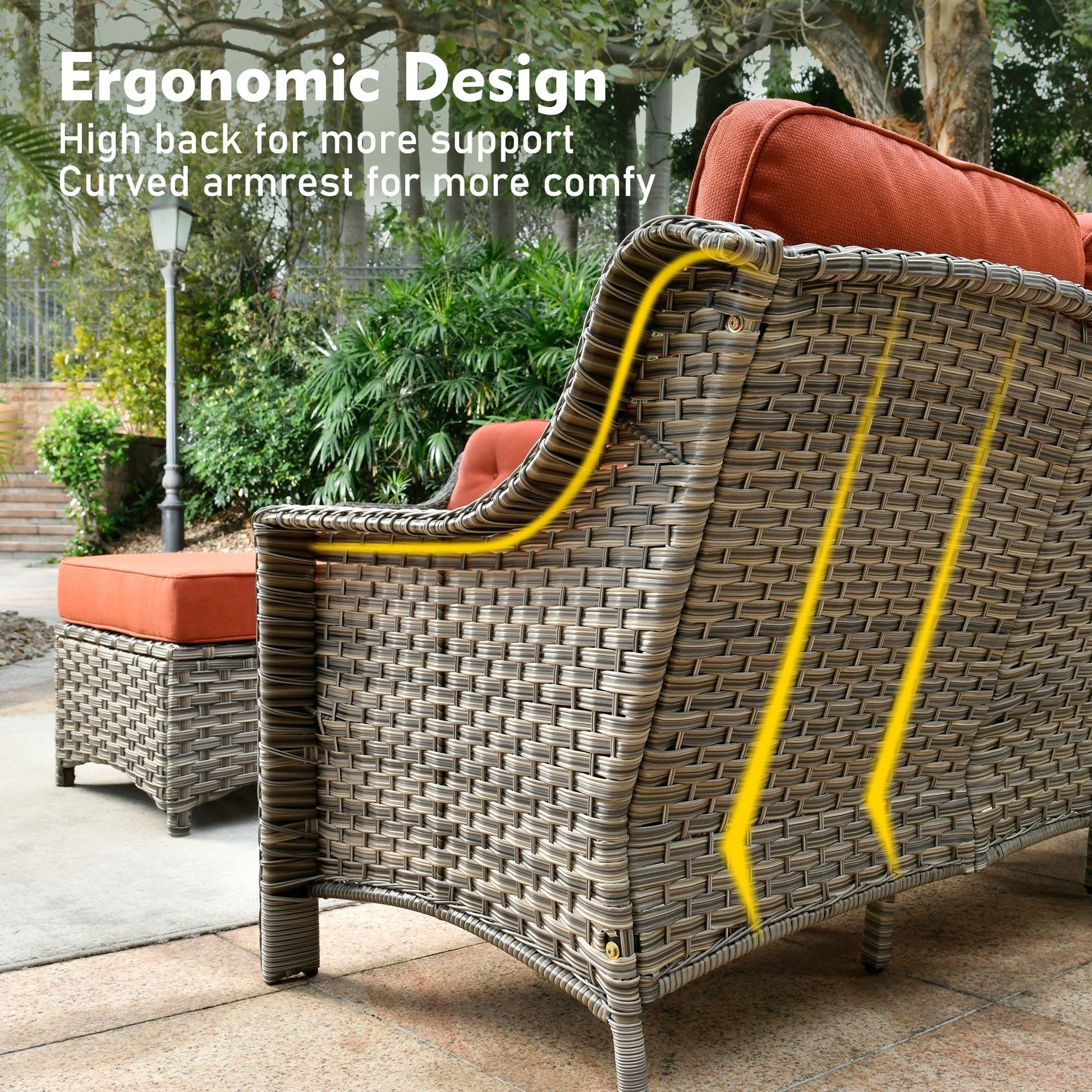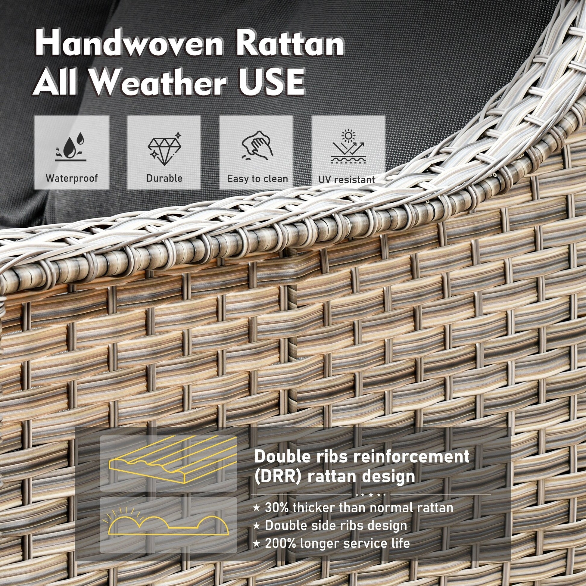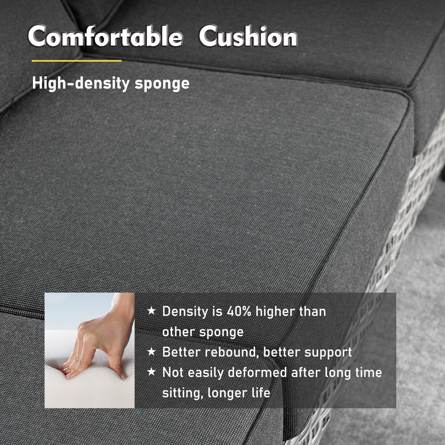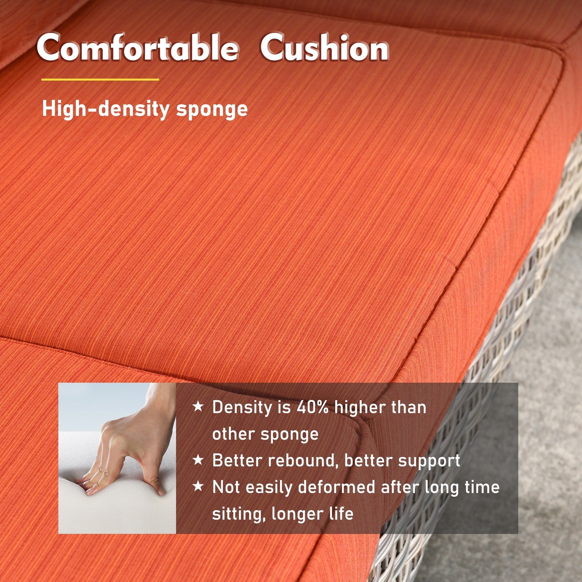 Experience the durability and reliability of this 8-piece rattan wicker outdoor furniture conversation seating set. Crafted with premium PE rattan and a sturdy powder-coated steel frame, ensuring years of outdoor enjoyment. Enjoy ultimate comfort with the high-density sponge seat cushions and tufted design fluffy back cushion. High quality yarn-dyed fabric is thicker and good texture, the splash-proof material ensures hassle-free maintenance. Swivel rocker with a solid round base, ensure more stable rocking and swivel function. Create a gently rocking and freely 360°rotation for you to enjoy.?