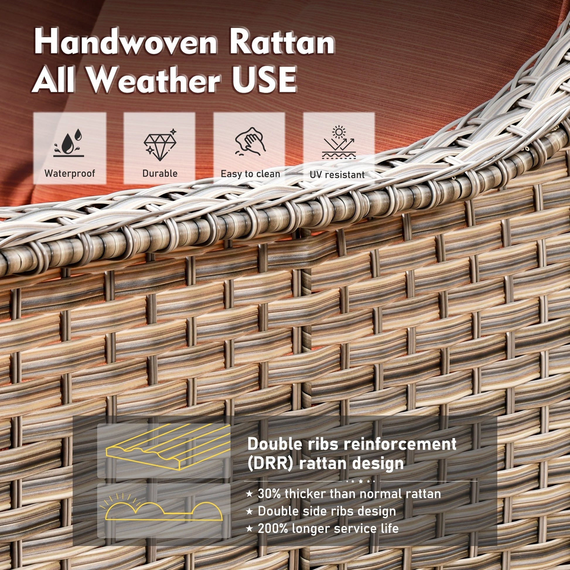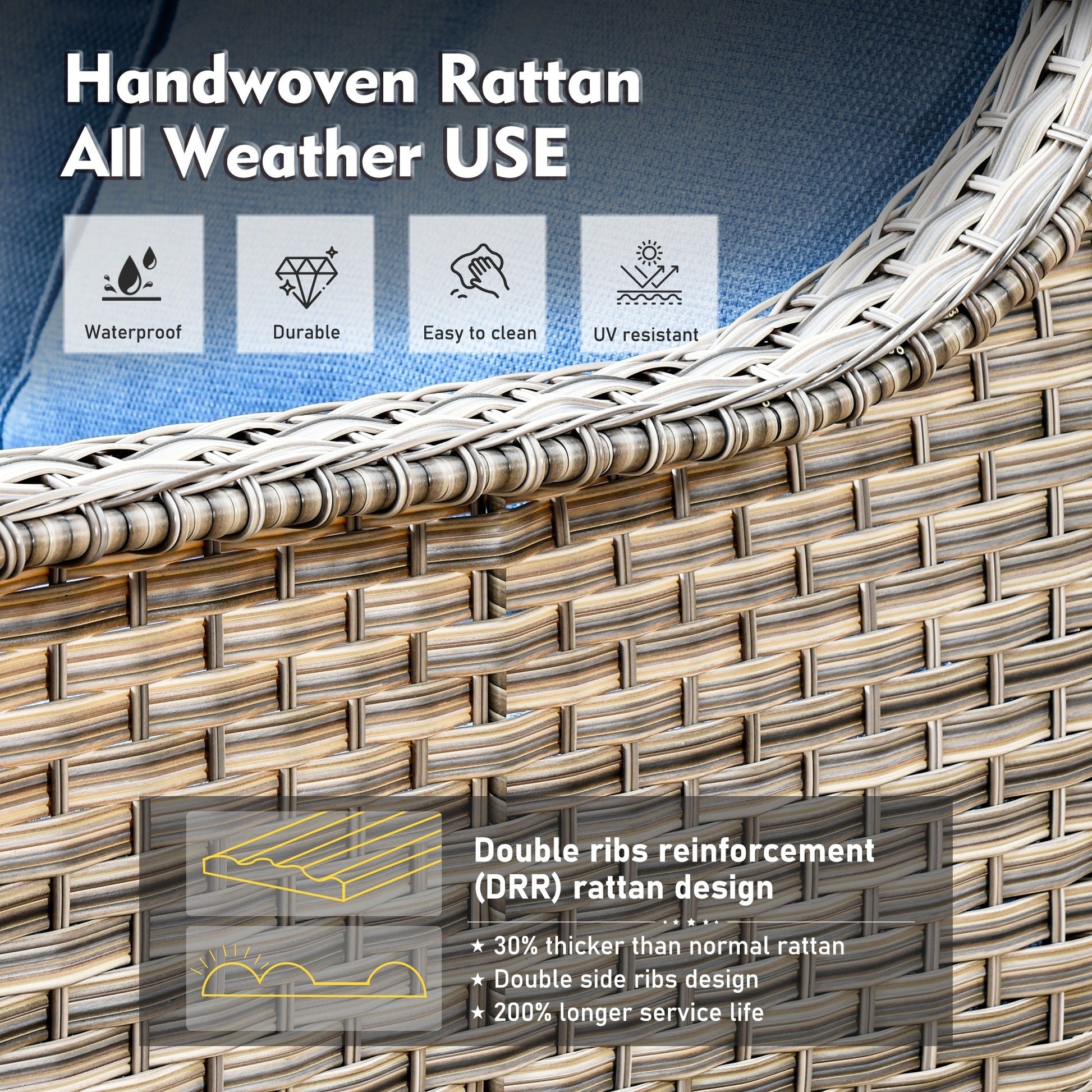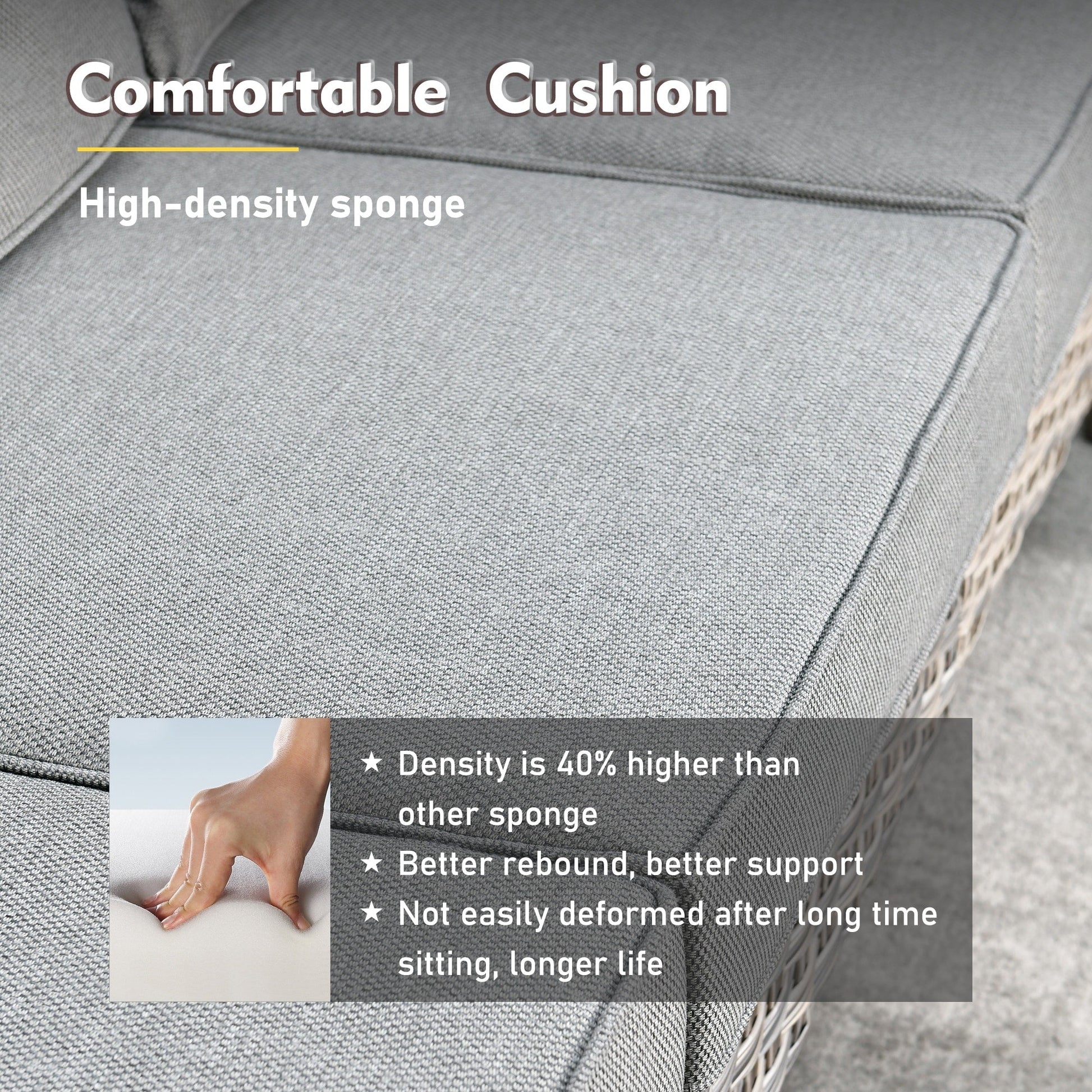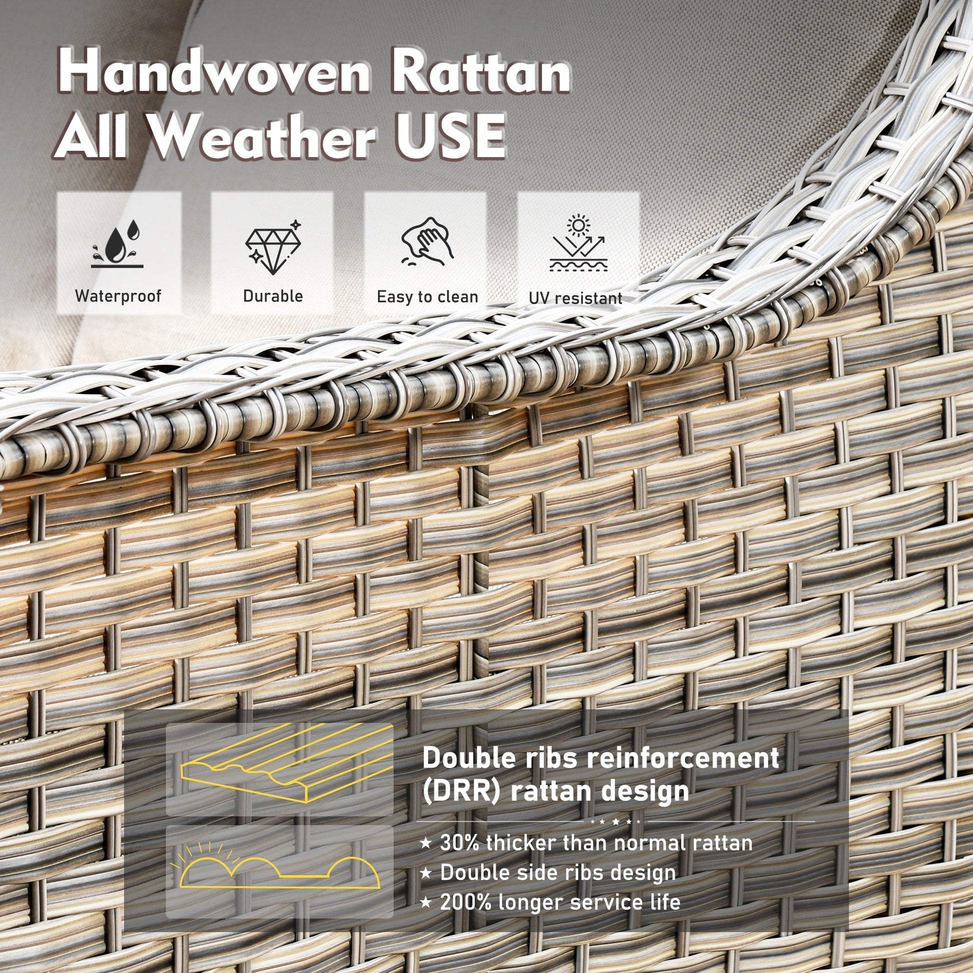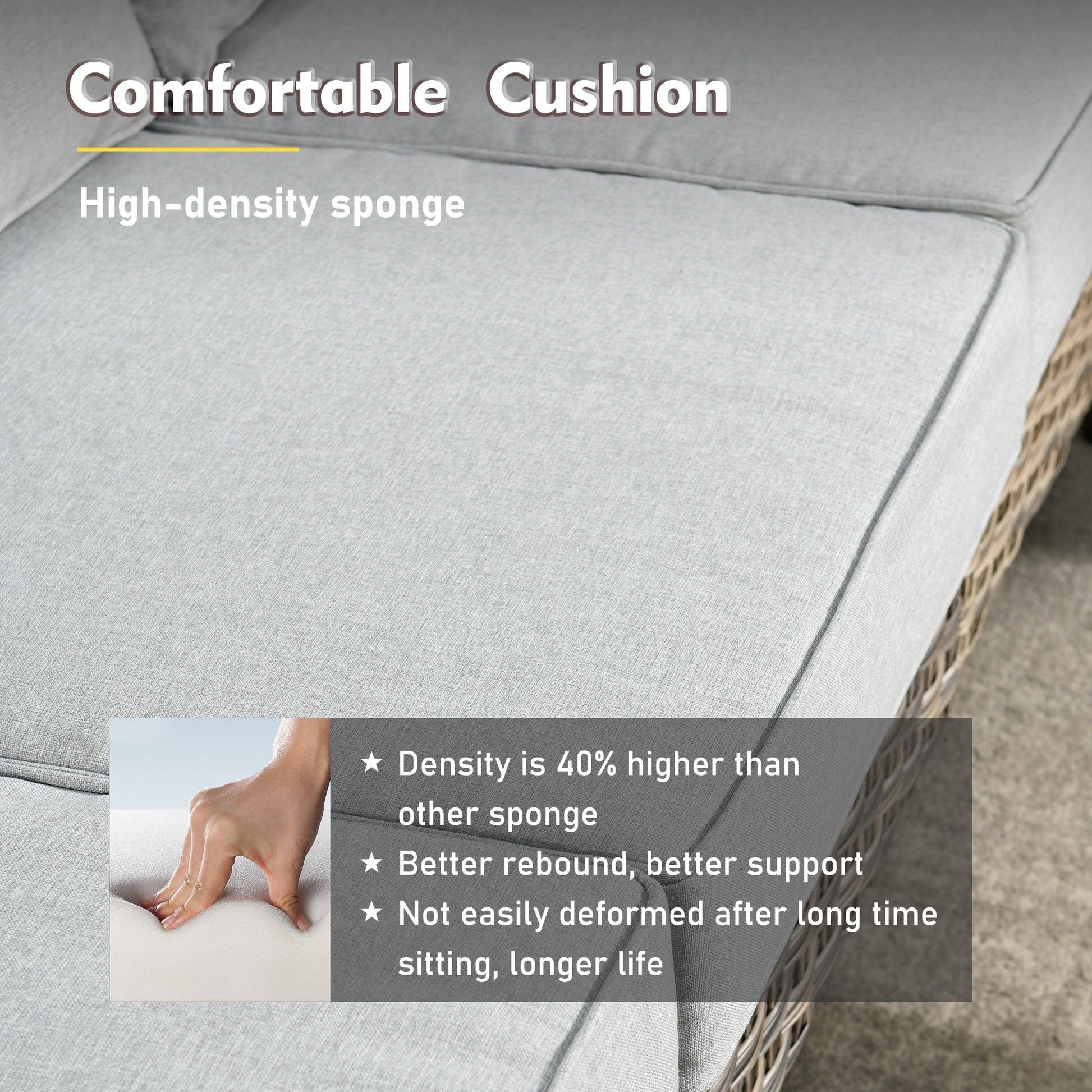 Experience the durability and reliability of this 8-piece rattan wicker outdoor furniture conversation seating set. Crafted with premium PE rattan and a sturdy powder-coated steel frame, ensuring years of outdoor enjoyment. Enjoy ultimate comfort with the high-density sponge seat cushions and tufted design fluffy back cushion. High quality yarn-dyed fabric is thicker and good texture, the splash-proof material ensures hassle-free maintenance. Swivel rocker with a solid round base, ensure more stable rocking and swivel function. Create a gently rocking and freely 360°rotation for you to enjoy.?