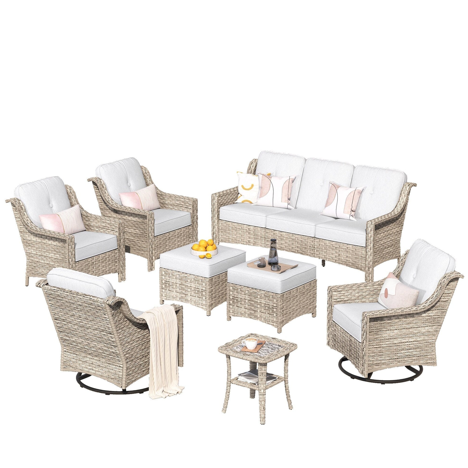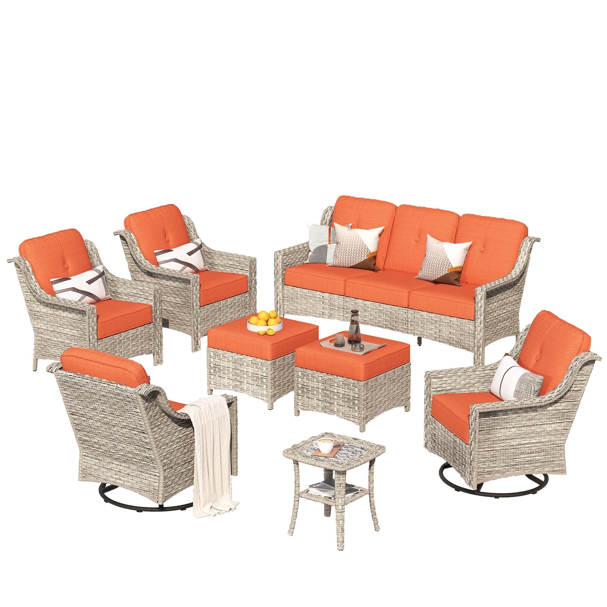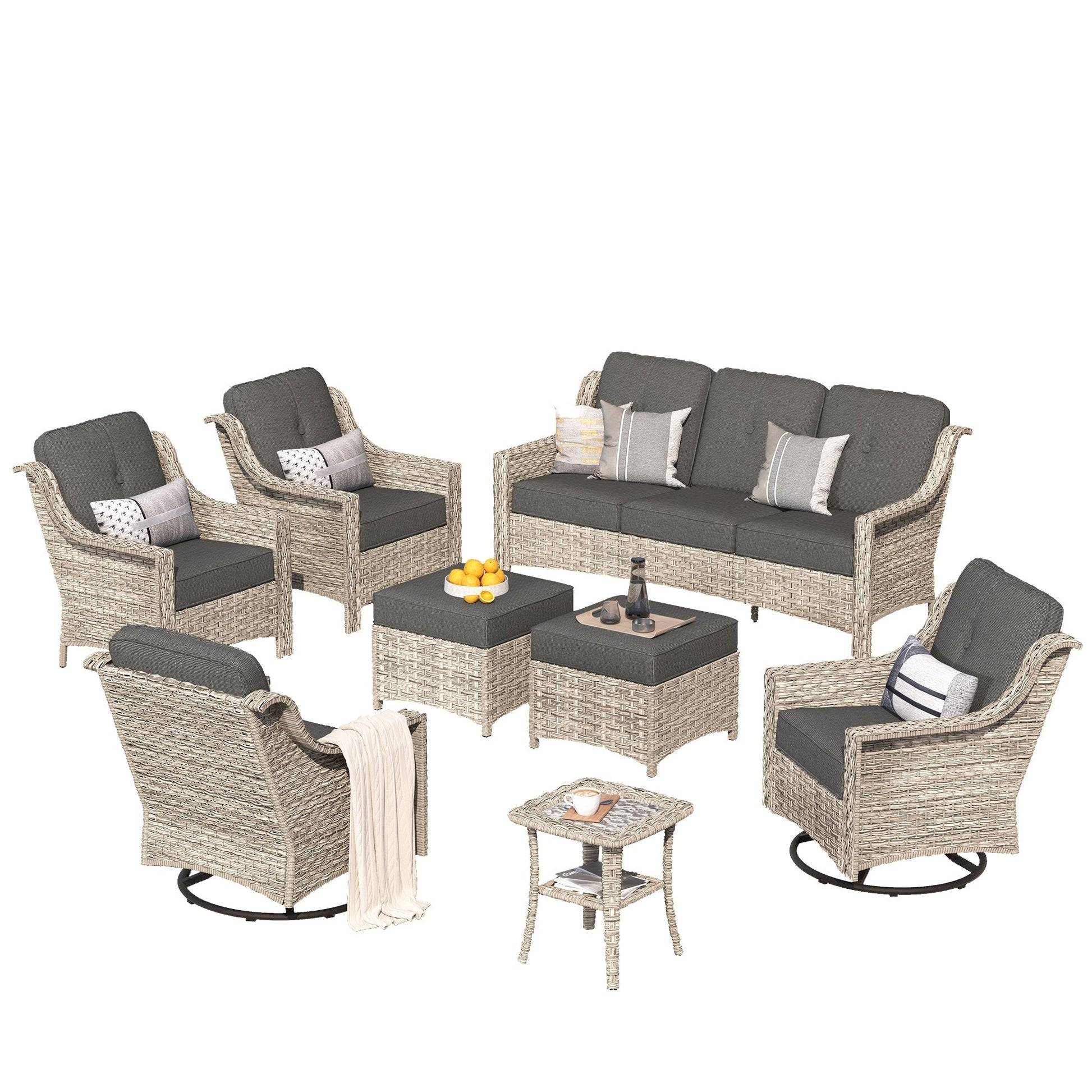 XIZZI 8-piece Patio Furniture Set Wicker Outdoor Seating Swivel Chairs