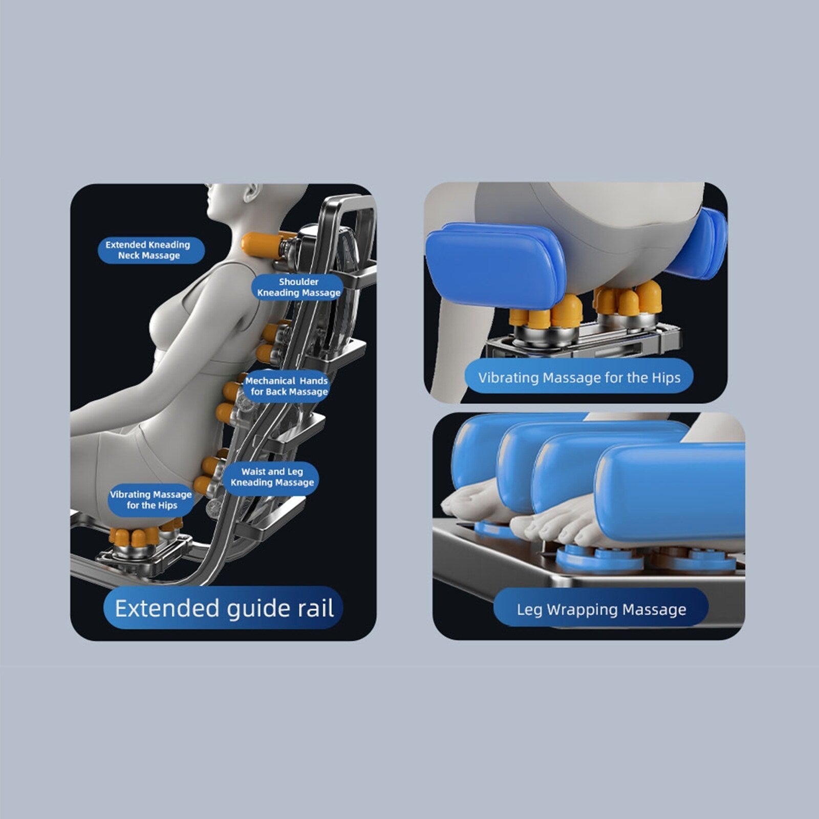 Experience unparalleled relaxation and health benefits with this Zero Gravity Massage Chair. Designed to provide a full-body massage, it features 20 strategically placed airbags that simulate real-person techniques, offering 3-speed force adjustment for personalized comfort. The 8 fixed rollers and 2 hip rollers, combined with waist heating components, effectively relieve back and waist pain, promoting overall well-being. The zero gravity feature simulates the state of weightlessness in space, reducing heart load and enhancing blood circulation for deep relaxation. Installation is a breeze with its plug-and-play design, detailed illustrated instructions, and user-friendly setup, making it perfect for both home and office use. Enjoy the ultimate in comfort and relaxation with this advanced massage chair.
